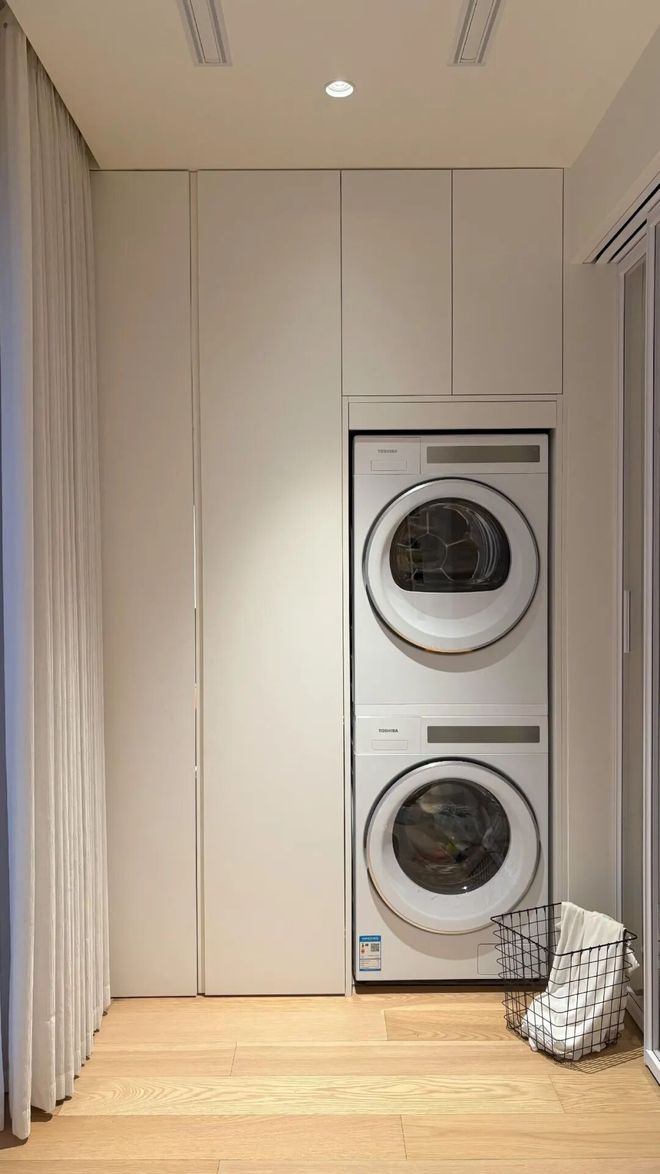 由于外面就是一组洗衣柜,内部的空间也间接性提到了扩大。柜门一关,整齐又秩序。