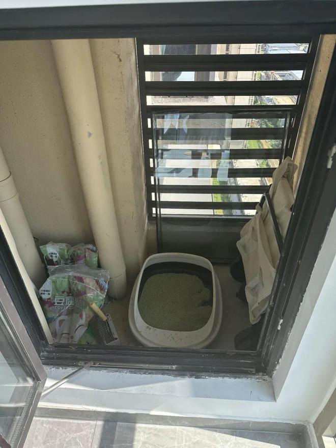 对于养猫的家庭来说,还可以将猫砂盆放进外机平台里,再定制一扇宠物玻璃门,既方便了进出,又彻底隔绝了异味。