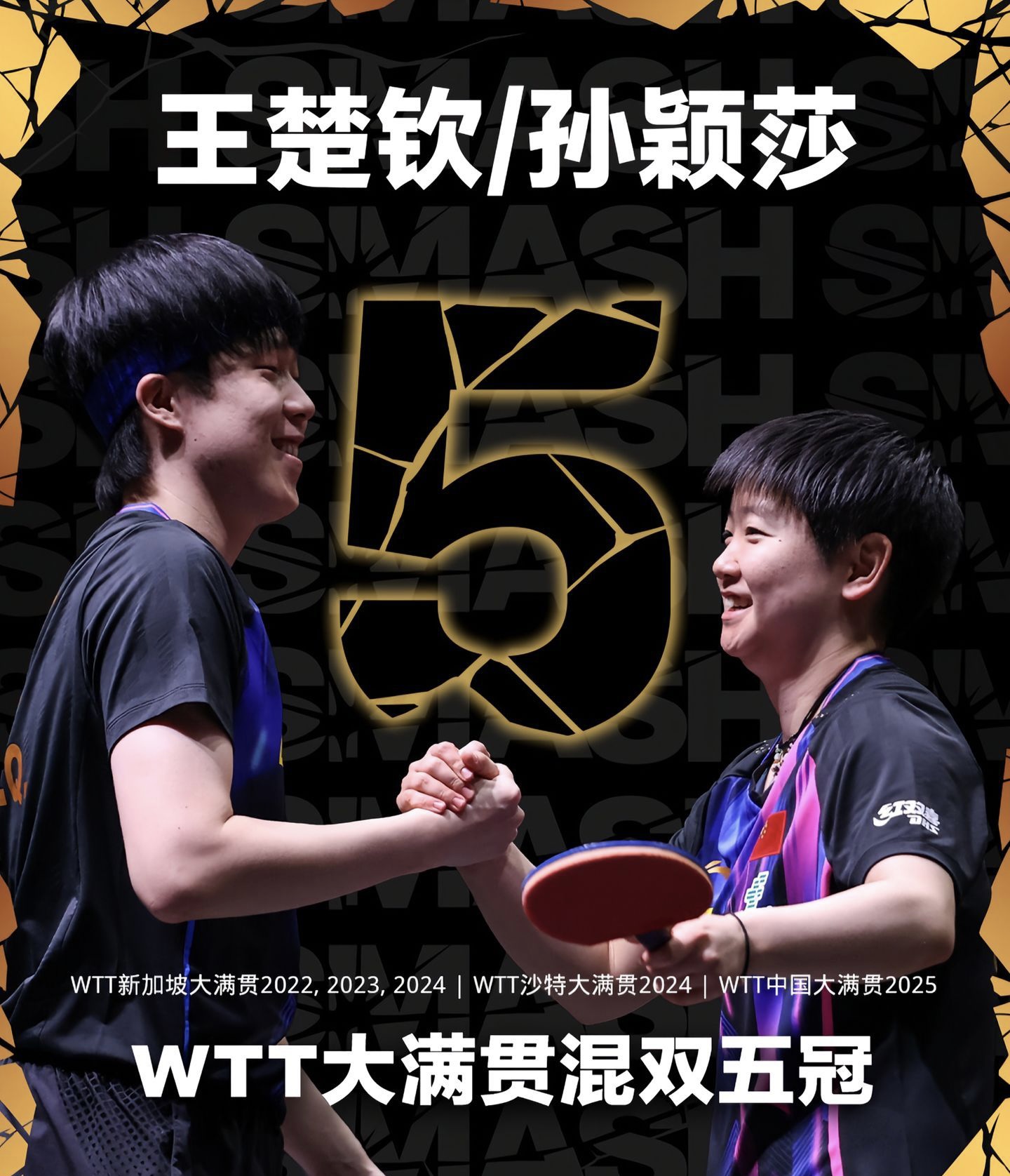 核心提示:在举国同庆的欢腾氛围中,2025年WTT中国大满贯赛场上传来捷报。国乒最强混双组合王楚钦与孙颖莎以无可挑剔的强
