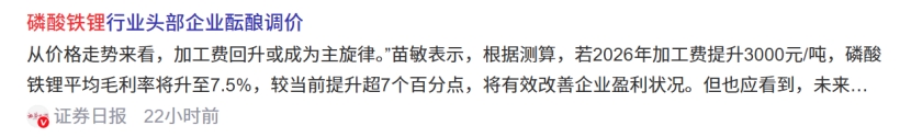 近日有消息显示,多家磷酸铁锂龙头企业提出提价诉求,其中两家头部磷酸铁锂厂商计划自2026年起,将全系列铁锂产品加工费统一上调3000元/吨