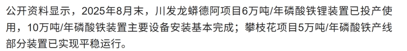 磷酸铁产能:公司现有磷酸铁产能10万吨/年。