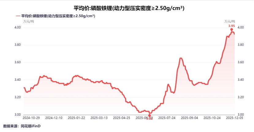 根据同花顺iFinD数据显示,截至12月3日磷酸铁锂的价格为39500元/吨,较6月以来累计上涨超30%。