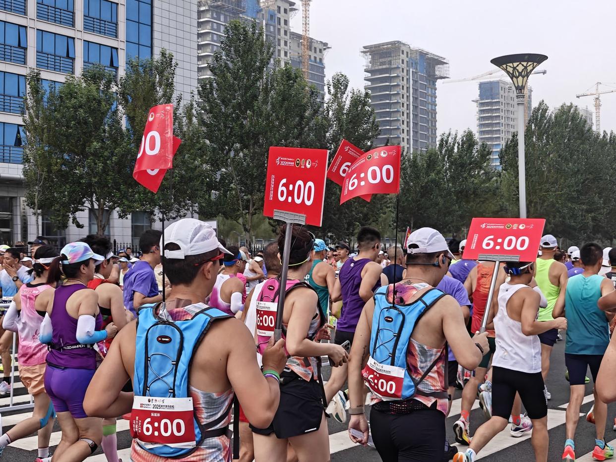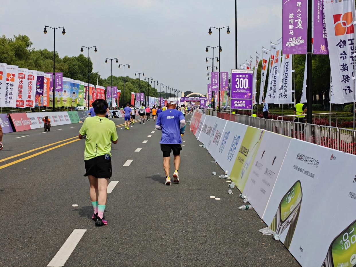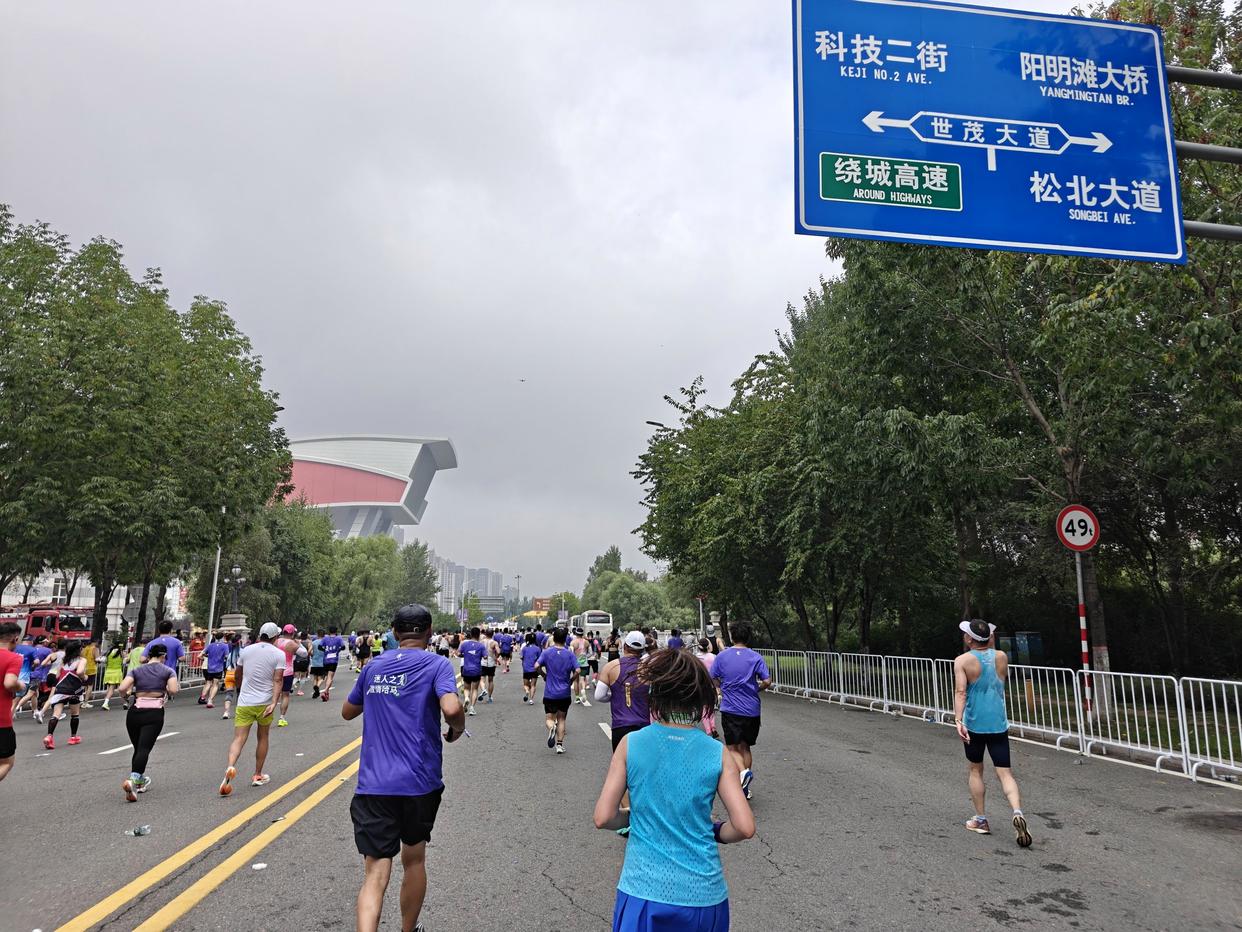 ▲2小时13分,全程和半程分流。虽然我每次都会报全马,但每次在全、半程分流的地方,都很羡慕半程选手呀~如果终点在同一个地方的话,半程选手顶多两三个小时跑完,可以在终点大吃特吃赛后补给。而全程要跑五六个小时的选手,到终点时大概率都是没什么吃的了。