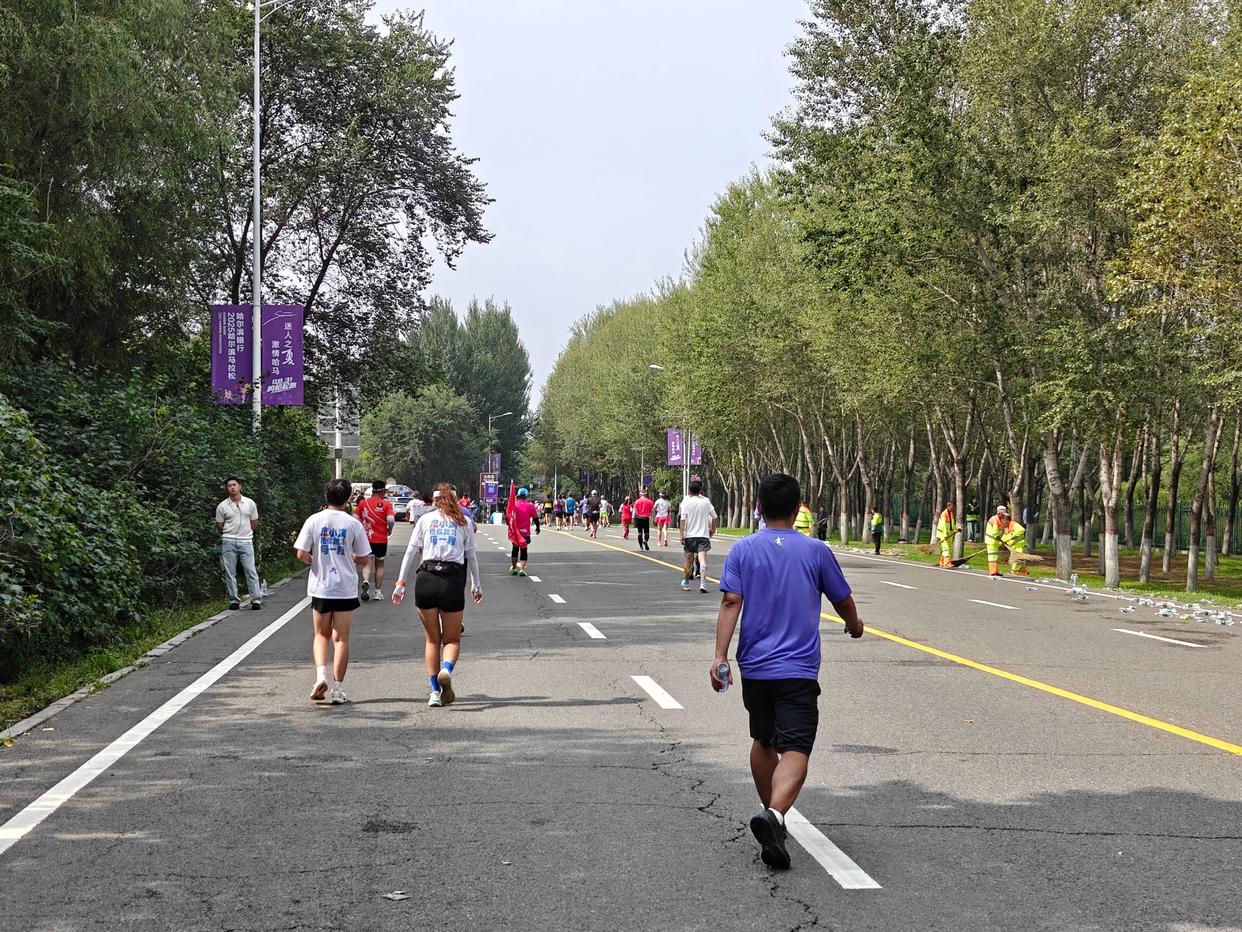 ▲14公里了,跑马人群真的就还蛮庞大的,比如前面这位绿衣服大叔,就是从郑州来的,离哈尔滨也挺远了。
