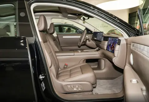 先说说外观吧,作为一款中大型 SUV,它的尺寸是 4937mm 长、1988mm 宽、1671mm 高,看着挺大气,但又不会显得笨重。设计师用了不少柔和的曲面,再配上凌厉的腰线,光线下看着很有层次感,哪怕停在那儿都有种要往前冲的劲儿。前脸是纯电车常见的封闭式设计,最显眼的是 “猎鹰智慧灯光 2.0” 大灯,造型 sharp,晚上点亮后辨识度很高。侧面用了溜背设计,从 B 柱往后线条很顺,不仅看着像轿跑 SUV 那样运动,对减少风阻也有帮助,而且隐藏式门拉手让侧面看起来更整洁。车尾的贯穿式尾灯和车头呼应,拉宽了视觉效果。值得提的是 Ultra 版本的轮圈,前 235/45 R21、后 265/40 R21 的规格,不光看着有力量感,更宽的后轮对抓地力提升也很明显,开起来更稳。