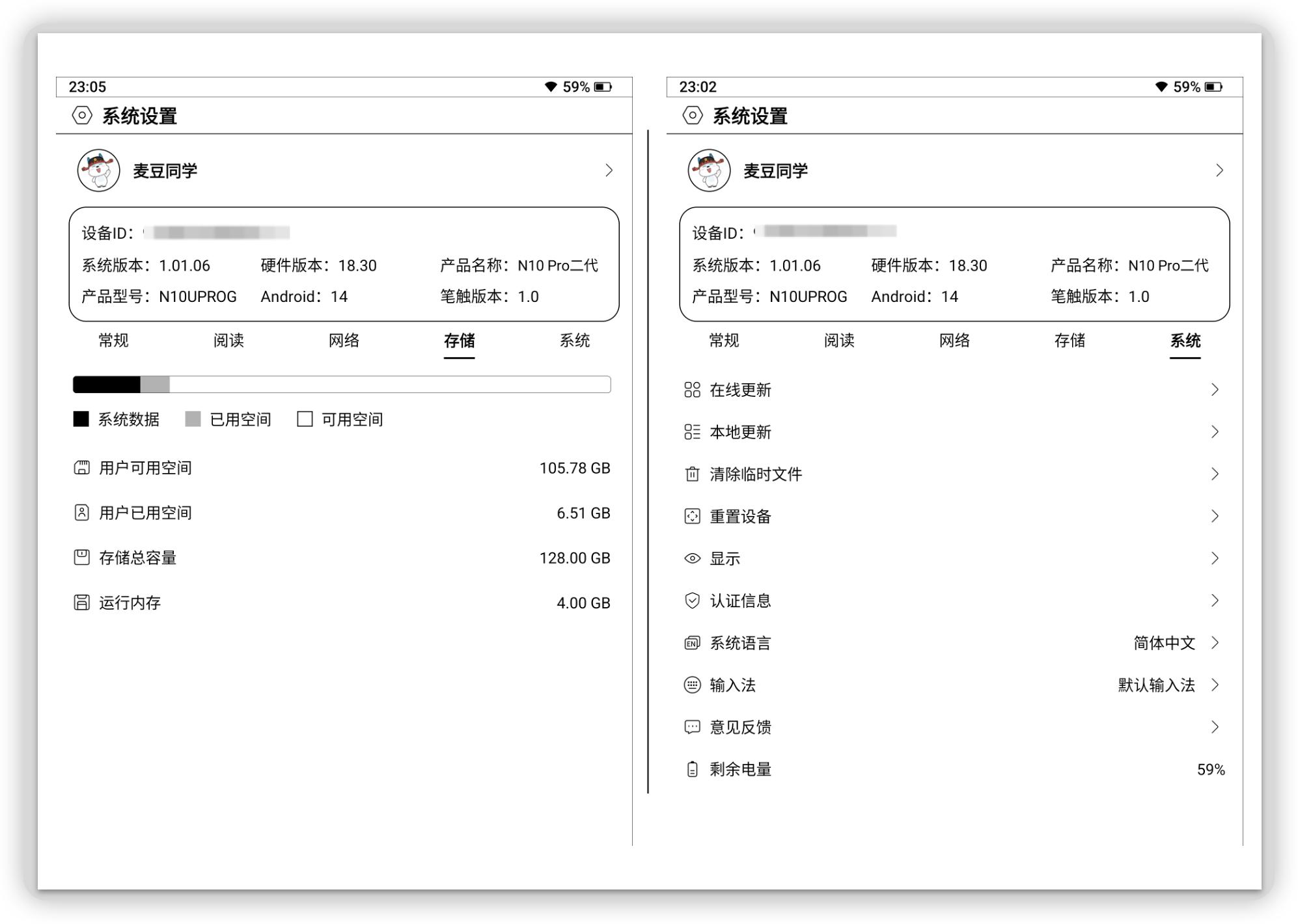 汉王 N10 Pro 二代:采用8核CPU,主频更高;存储容量更大,升级到128G,存储文件及APP更加从容;6500mAh大电池,提供更长的续航时间。内置系统采用Android 14,不仅流畅,兼容性也更好,支持更多、最新的三方扩展应用。