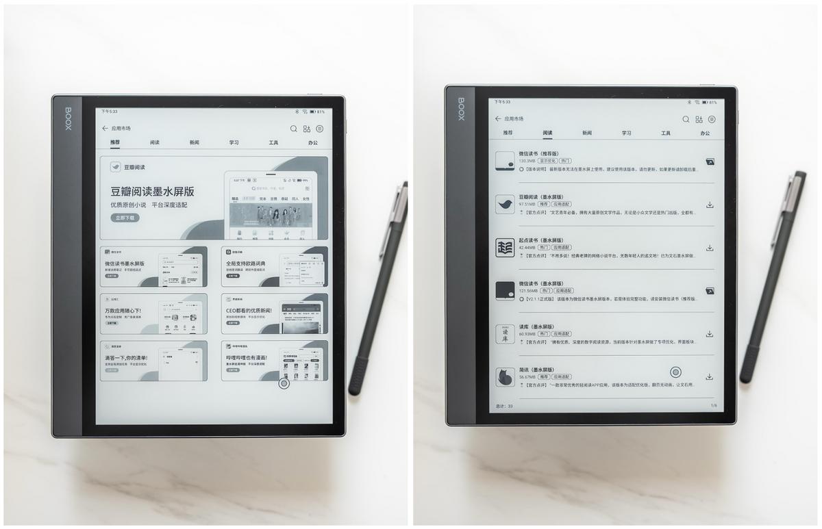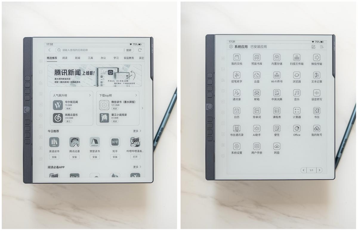 系统支持有限第三方APP安装,APP数量达100+,完全能满足用户对电纸书的基础使用需求,兼顾办公与阅读的双重体验。