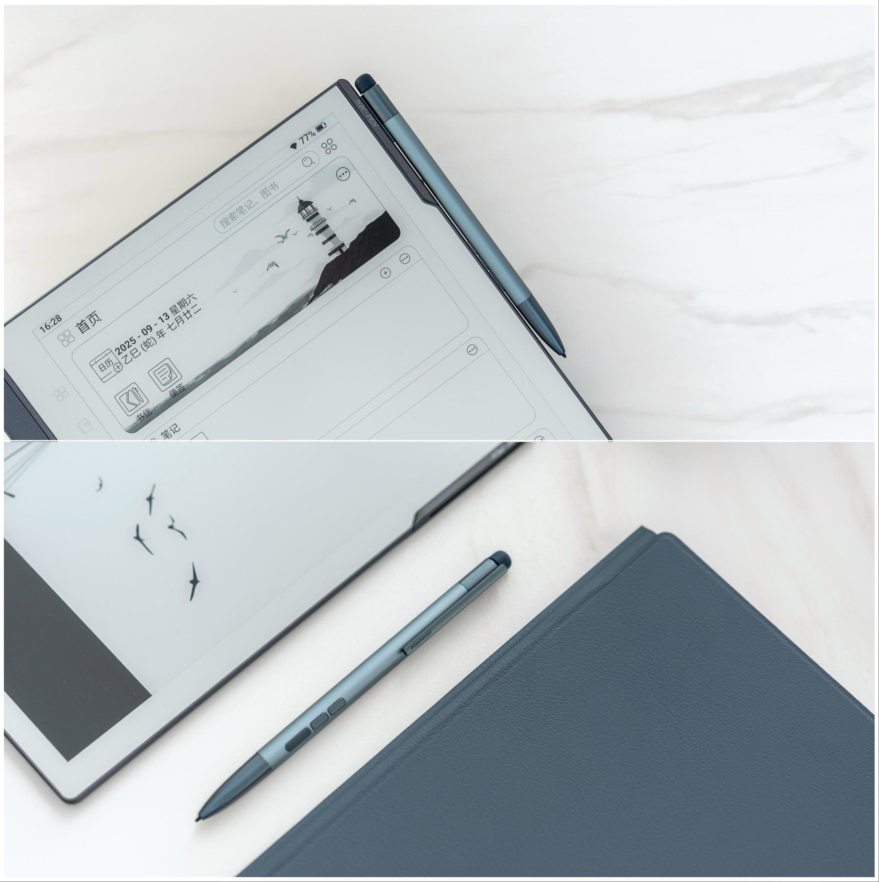 搭配的B5电磁笔,支持8192级压感,笔触细腻、延迟极低,还能模拟多种笔锋和压感变化。实测显示,其书写体验在同类产品中表现突出,屏幕更薄的特性让书写时的“纸感”更真实,压感精准、低延迟,无论是日常笔记还是绘画创作,都能轻松应对,也是目前市场上少数将数字笔深度应用于办公本的品牌。
