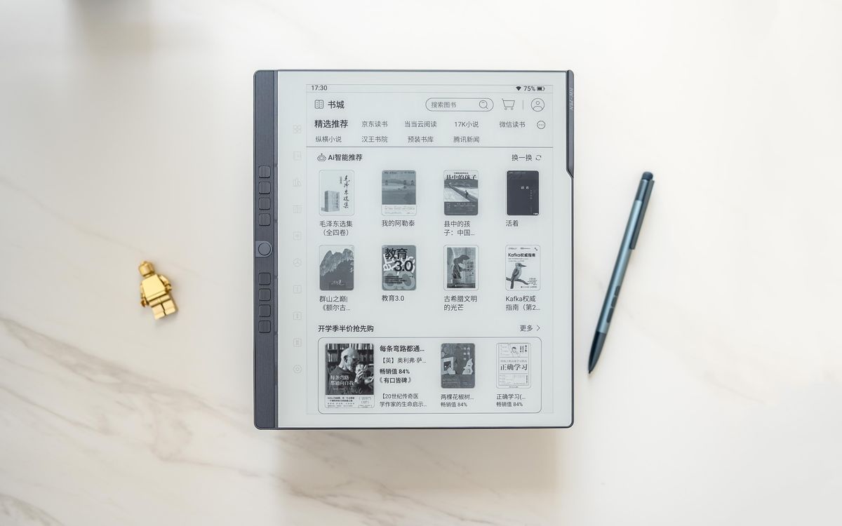 文石Note X5:书城资源相对较少,主要依赖京东读书和得到书城,更适合偏好这两个平台资源的用户,对于追求丰富图书选择的用户来说,可能存在一定局限性。