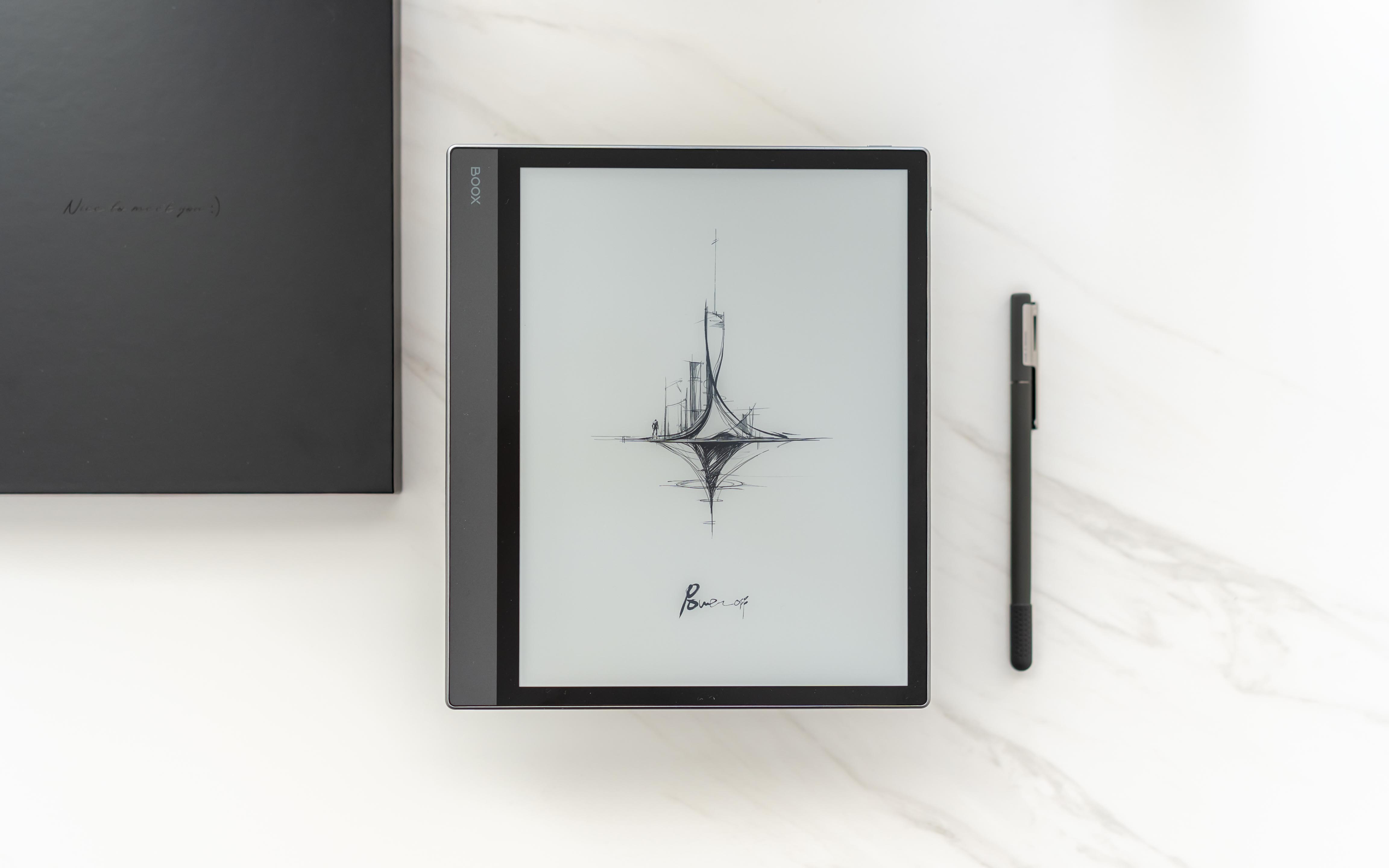 文石Note X5:边框采用三边等宽设计,视觉观感更简洁;同时支持手指触控与触控笔操作,操作方式更直观,无需额外学习,上手难度低。但受屏幕结构限制,显示效果不如汉王的减屏层设计通透。