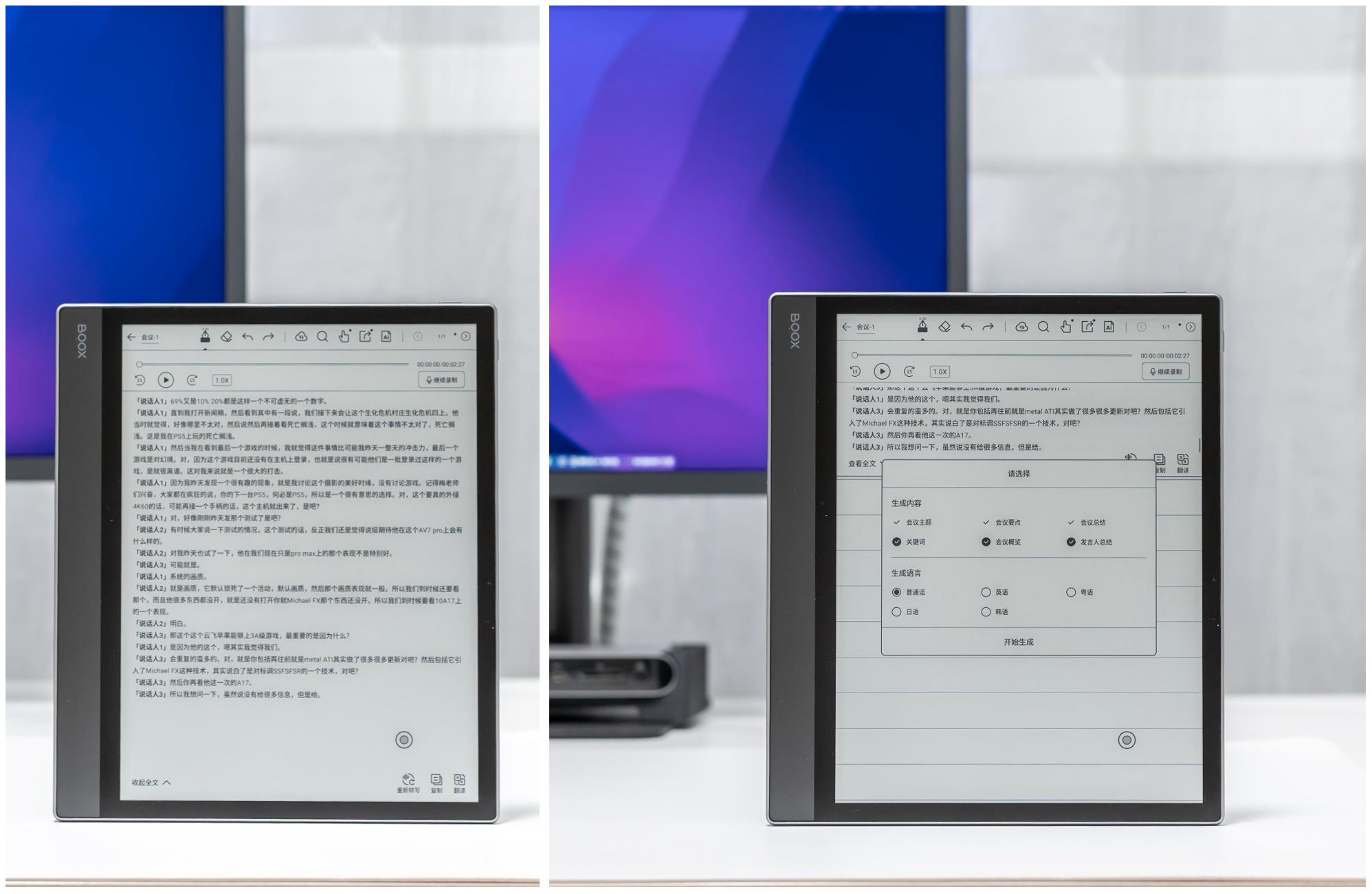 智能办公本很好的切中的这个赛道,电纸书凭借类纸护眼的显示效果、便携易携的机身设计,以及不断升级的智能功能。从早期单纯的电子文档阅读,到后来支持手写批注、云端同步的基础办公功能,再到如今接入 DeepSeek 等 AI 大模型,实现语音转文字、文档智能总结、跨语言翻译等高阶操作 —— 电纸书的进化,直接推动办公效率完成 “质的飞跃”。