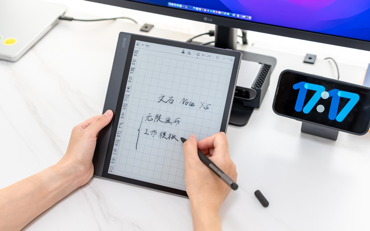 文石Note X5: 商务气息浓厚,系统开放性高,支持无限制安装第三方APP,可玩性强。相较于前代,在办公功能上有所提升,新增的AI智慧键、无限画布等功能,也贴合实际办公场景需求。