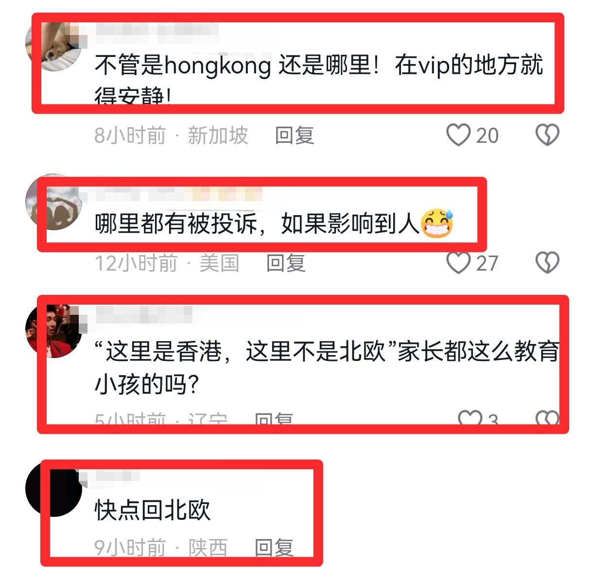 她从头到尾在强调“这里是香港”“这里不是北欧”,把问题归结为地域差异。可她从来没说过:孩子吵闹本身是不是不对?