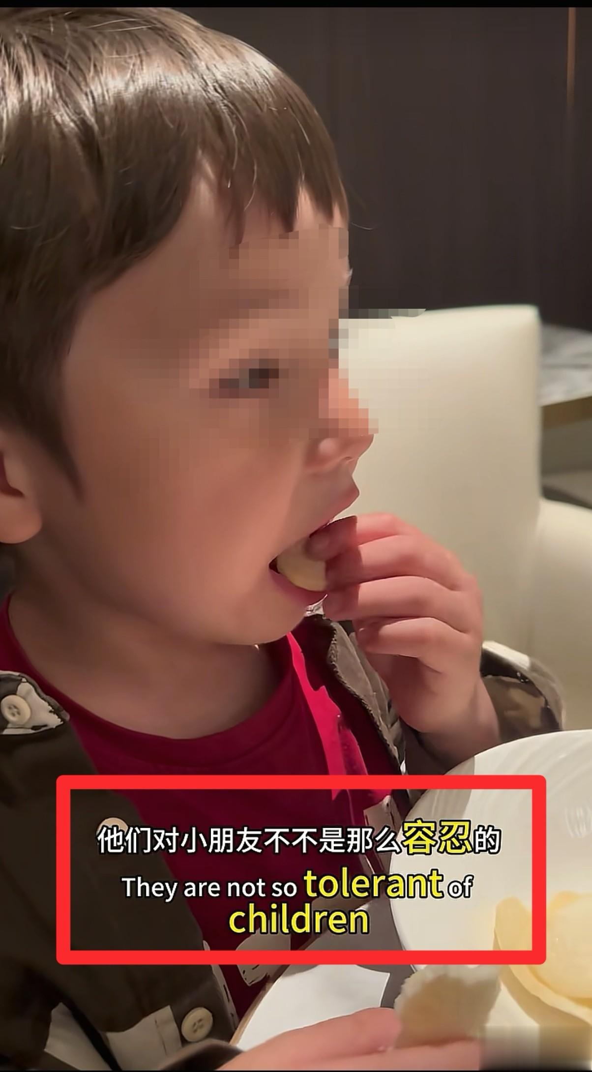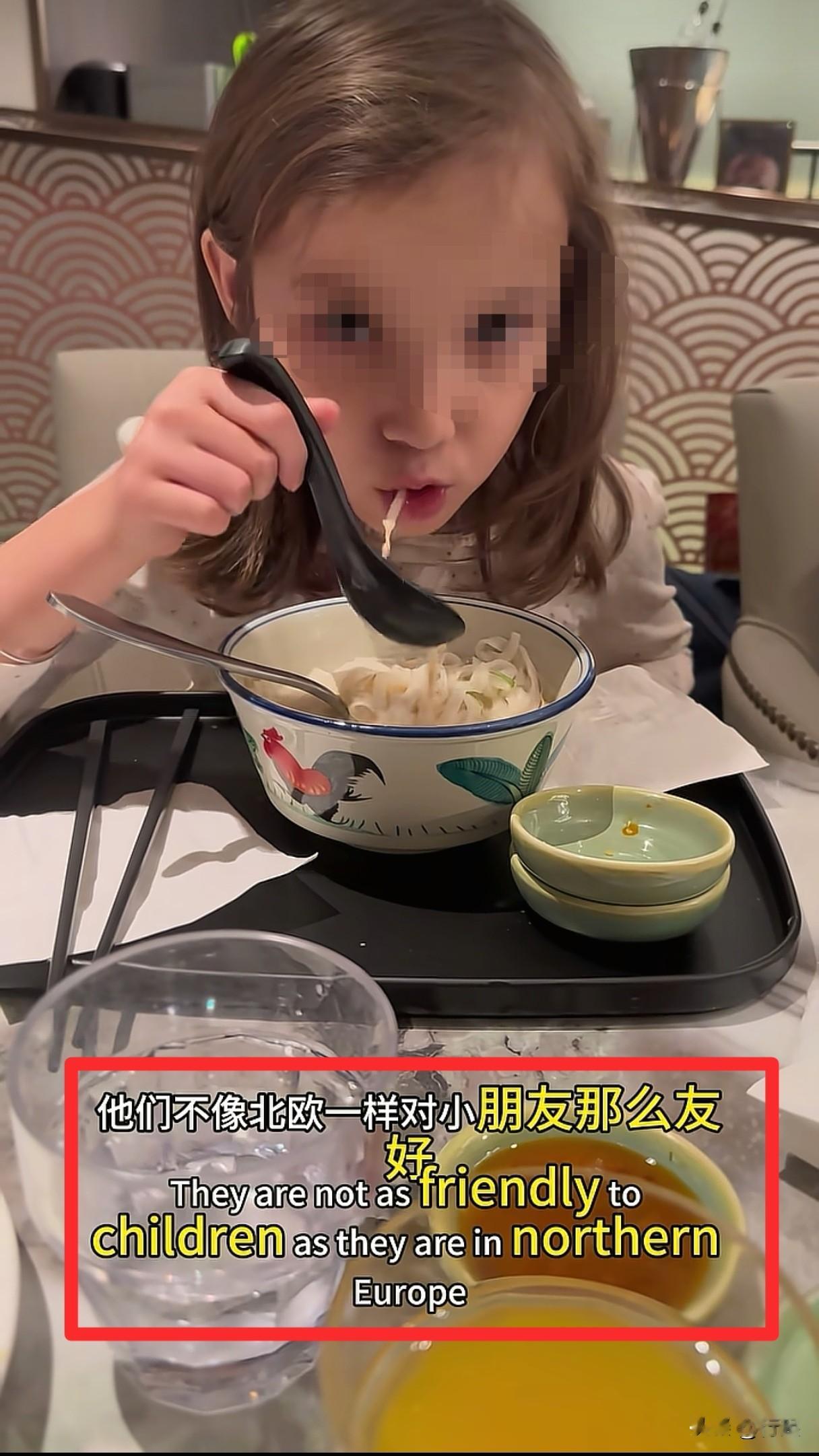 接着,我们看到博主又转头对自己的女儿再次强调:“这里不是北欧,这里是香港,他们不像北欧一样对小朋友那么友好。刚刚已经被投诉了,已经有服务员跟妈妈说太大声了。”