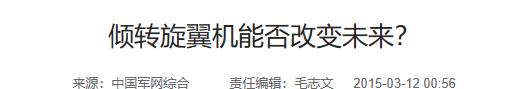 信息来源登载于:中国军网综合 2015年3月12日 关于“倾转旋翼机能否改变未来?”的报道