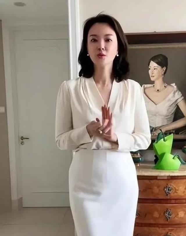 如今她48岁的年纪,留着干净利落的短发,没有花纹的白色上衣搭配着一条土灰色的裙子显得低调大方。