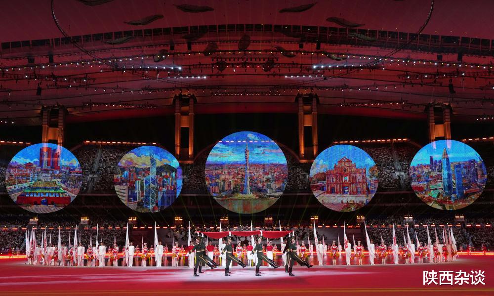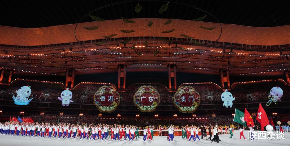 广东省体育代表团、香港特别行政区体育代表团、澳门特别行政区体育代表团在入场仪式上共同入场。新华社记者赖向东摄