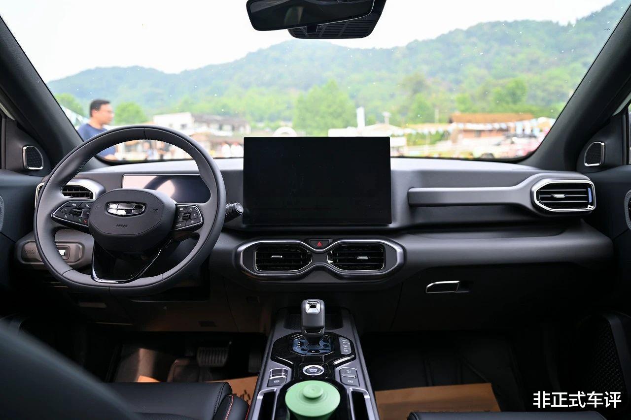 进入车内,吉利牛仔的内饰设计简洁大方又不失科技感。8.8 英寸液晶仪表盘+14.6英寸高清中控大屏,内置Flyme Auto车机系统,操作上也是流畅顺滑,同时支持华为Hicar、魅族 Flyme Link 互联,实现手机与车机无缝衔接。皮质、牛仔布和仿麂皮面料拼搭的座椅非常时尚,而它的后排空间还是非常宽敞的,并没有因为小身材而显得拥挤。