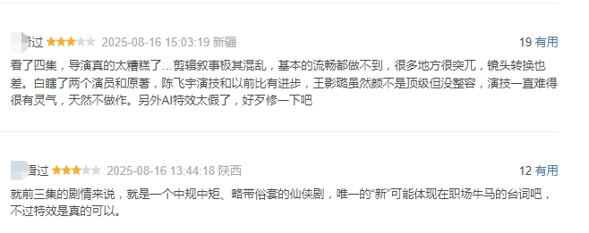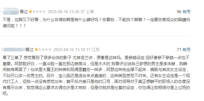 也有网友犀利批评,表示剪辑叙事混乱,剧情突兀,仙侠剧大魔头配上现偶霸总人设,比较俗套。