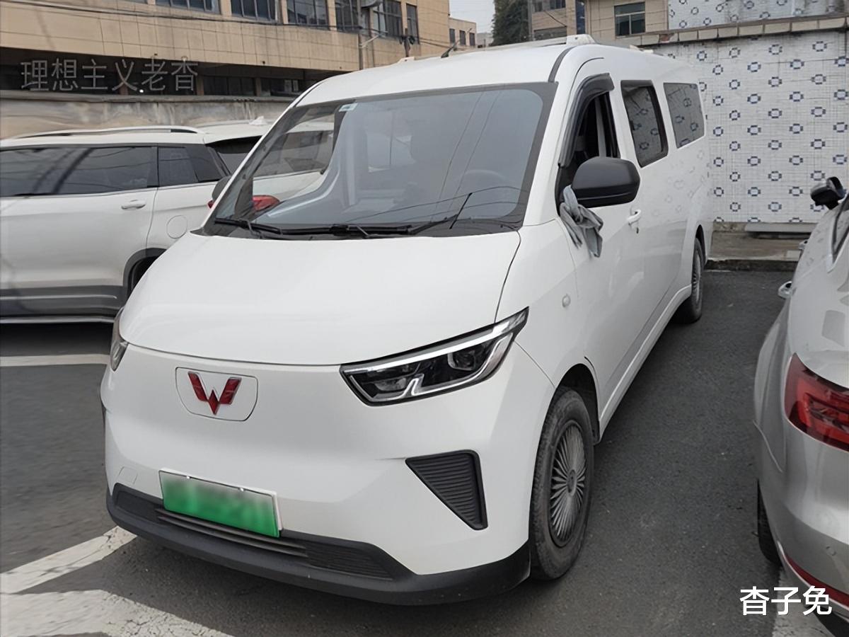 这是一台五菱扬光EV,内置60千瓦永磁同步电机,搭载42度磷酸铁锂电池,续航300公里左右,4门6座,通身大白色车漆,流线型设计有利于降低风阻彰显运动感。