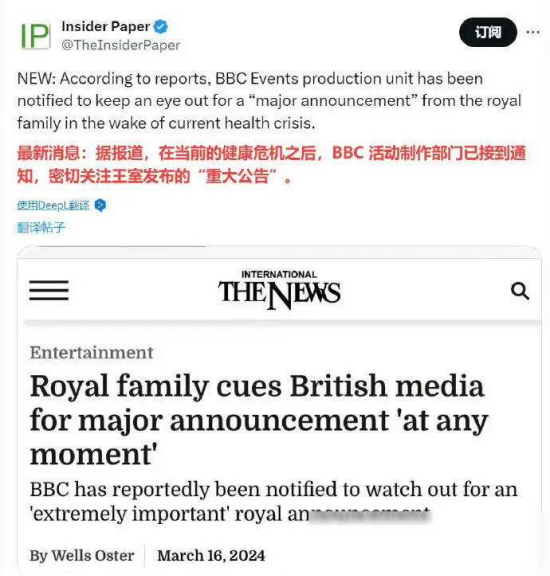 在这样的背景下,王室即将发布的重大公告无疑将引发更多的关注和猜测。人们期待着能够从这则公告中了解到更多有关凯特王妃的消息,希望她能够早日解释清楚,并重新回到公众视线之中。