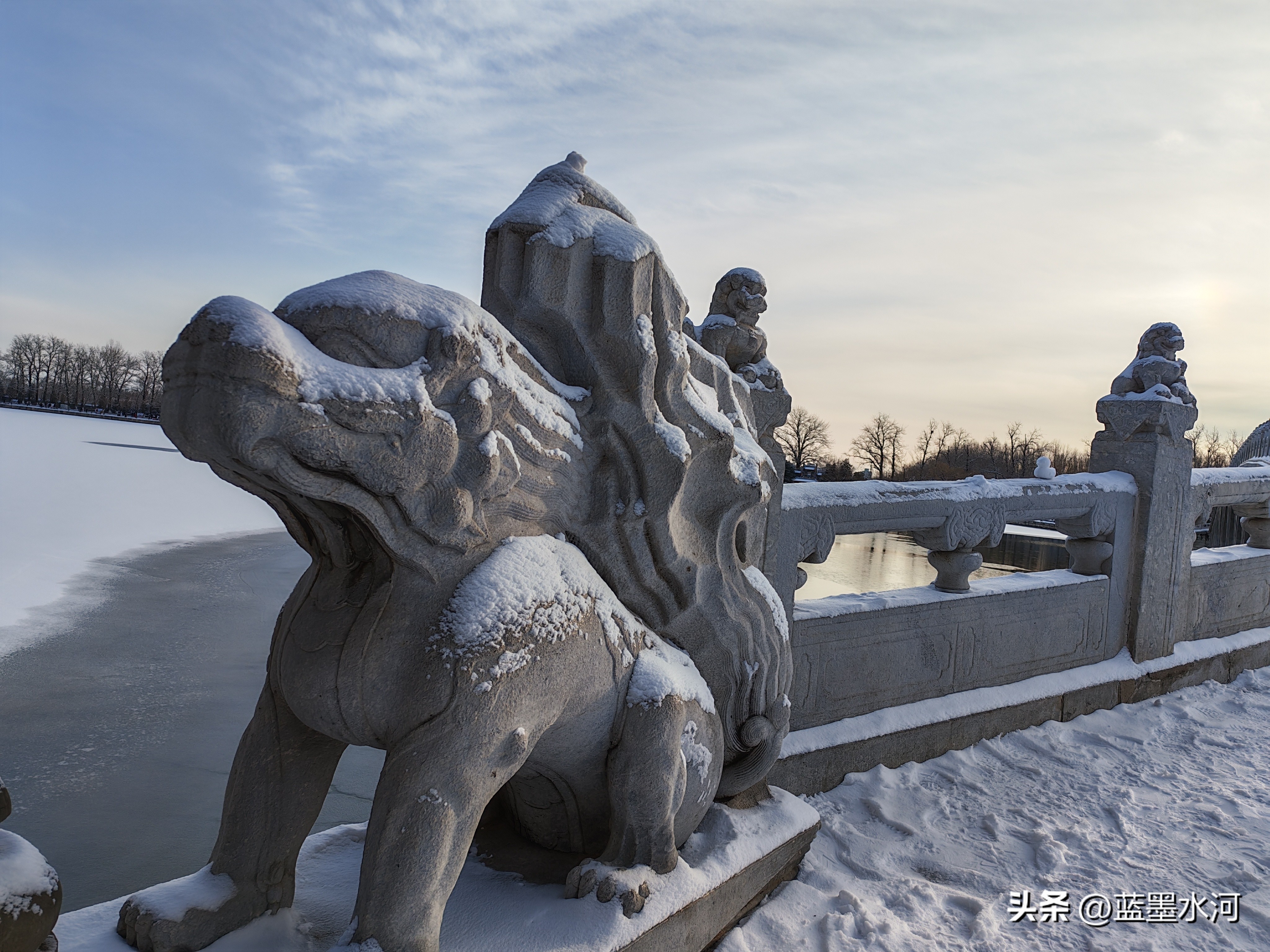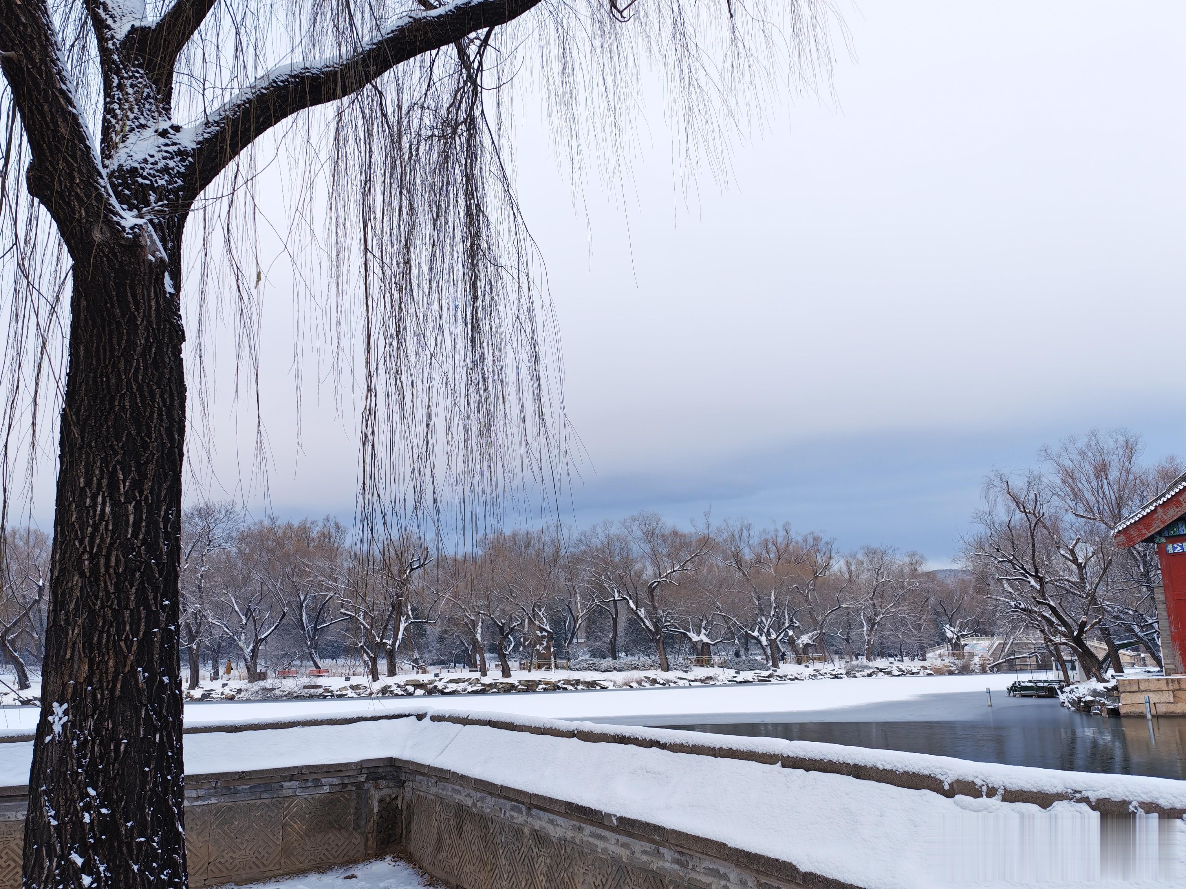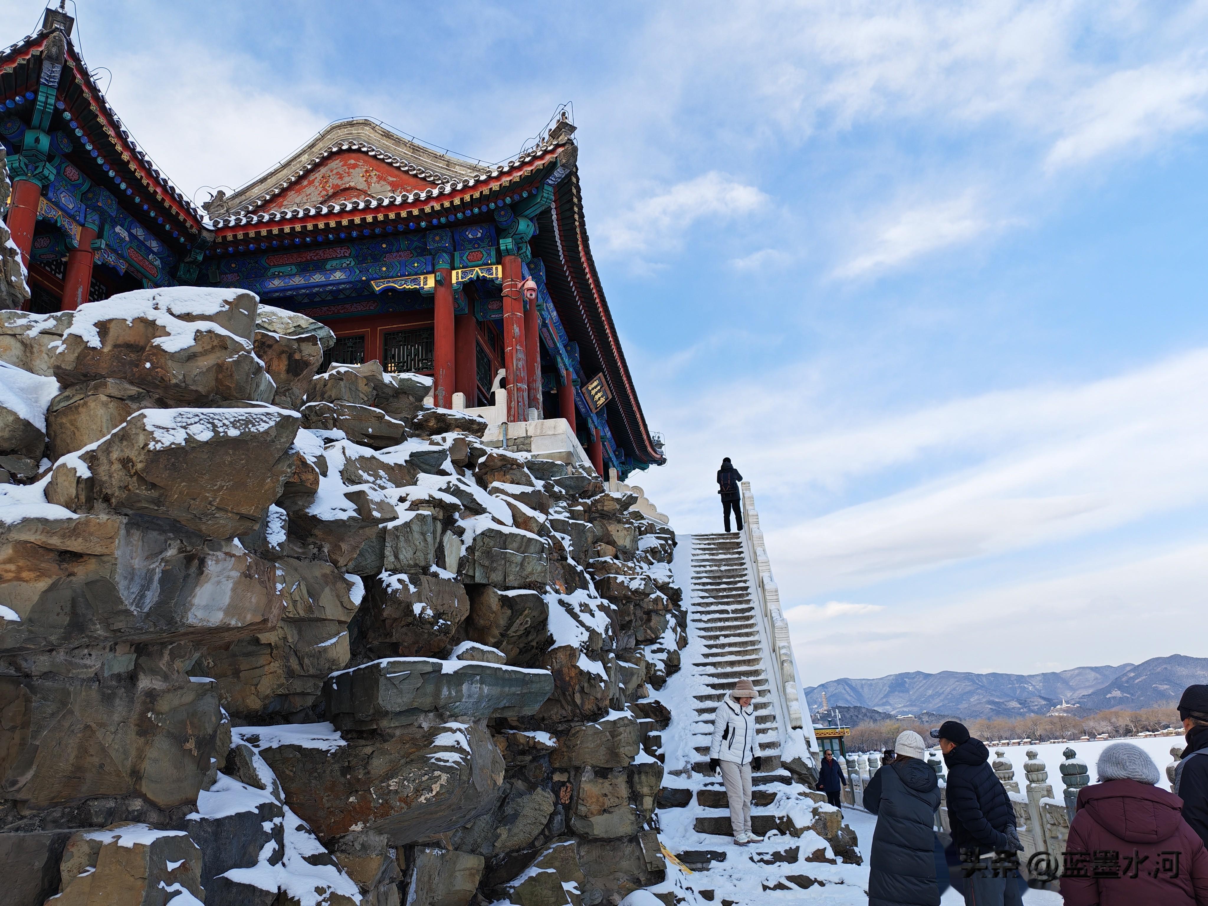 过了荇桥,来到石舫马头,大雪覆石舫马头,琼妆玉砌,一棹烟波笼雪影,尽揽皇家苑囿冬日清宁。