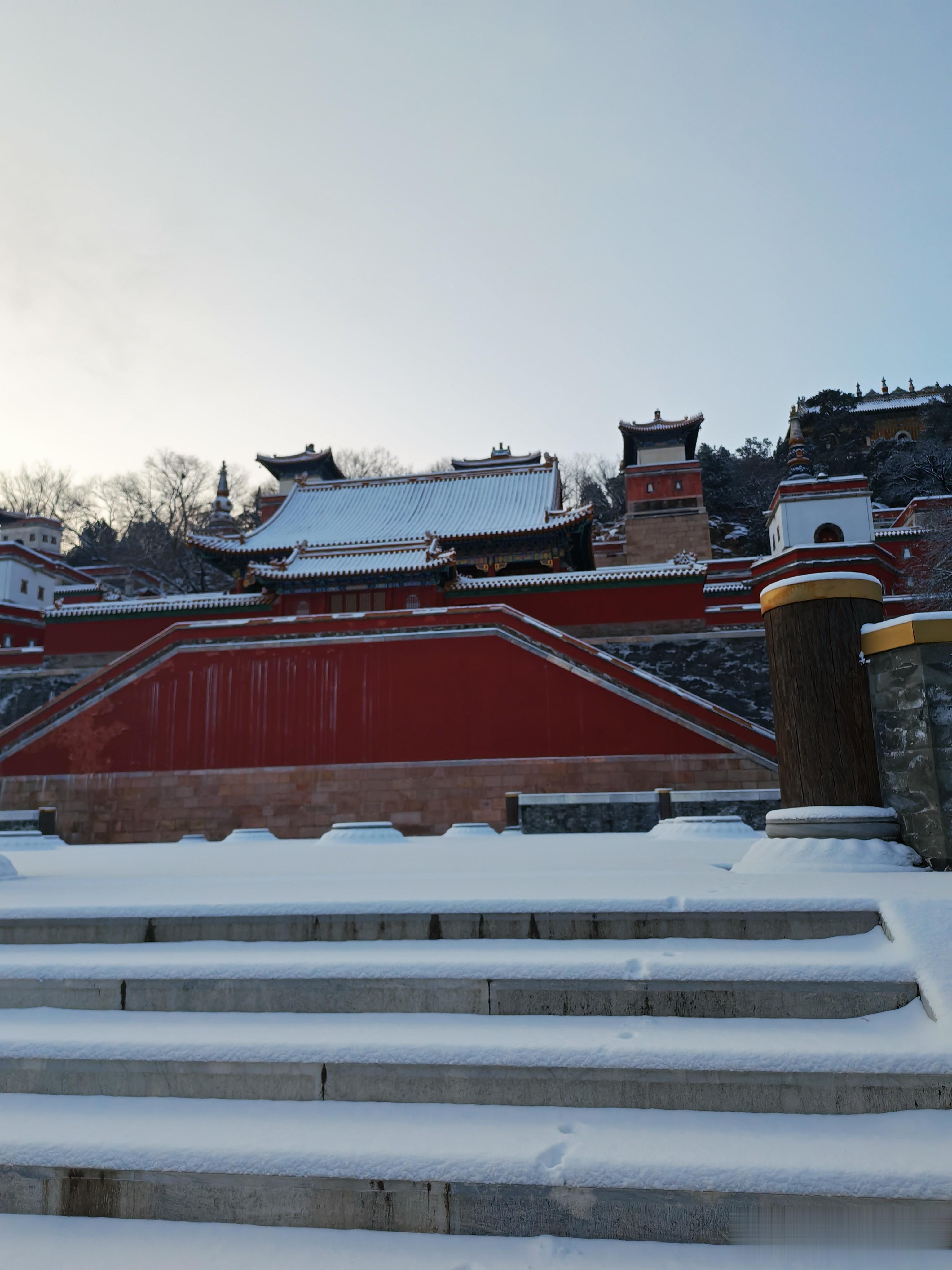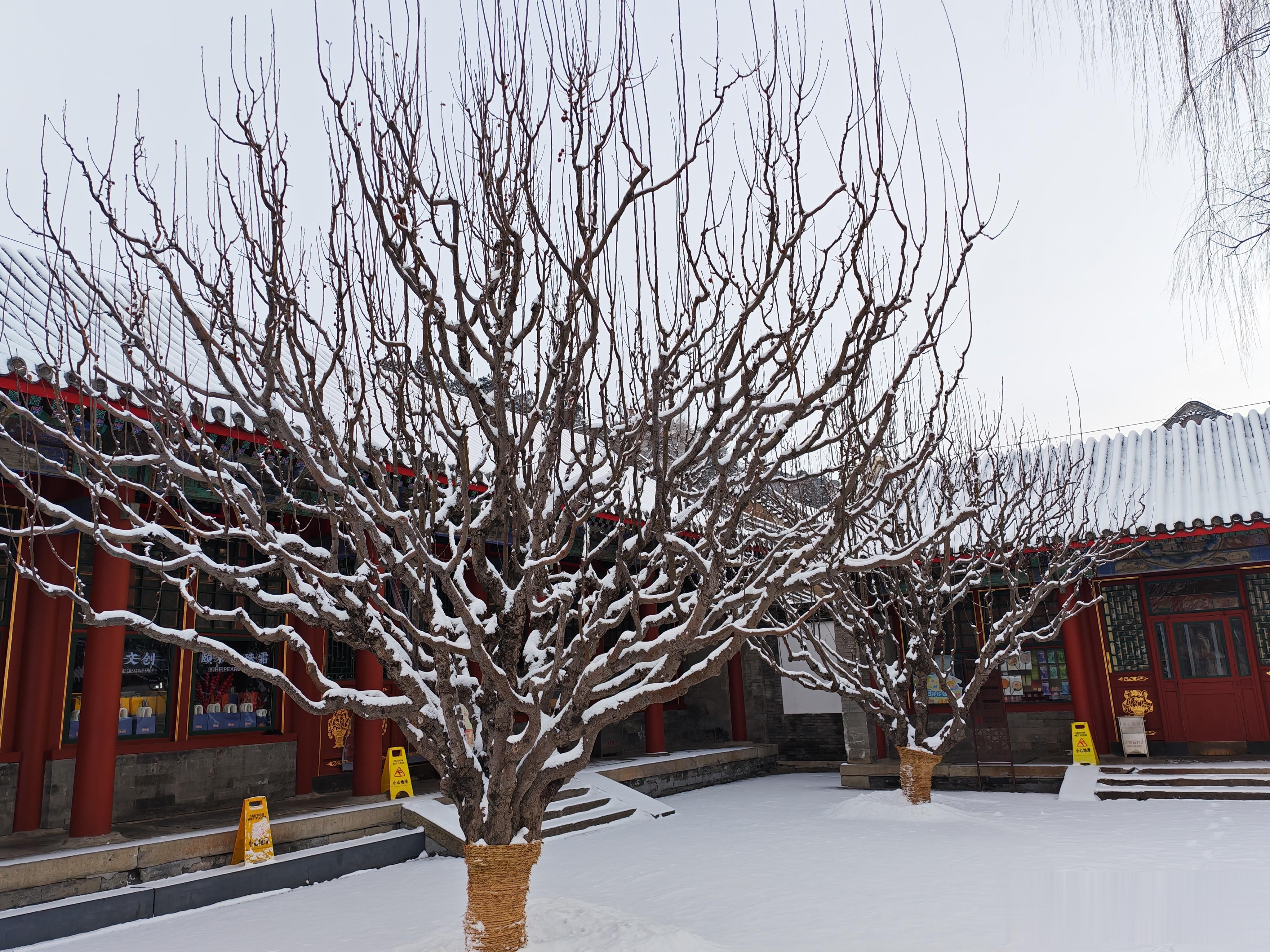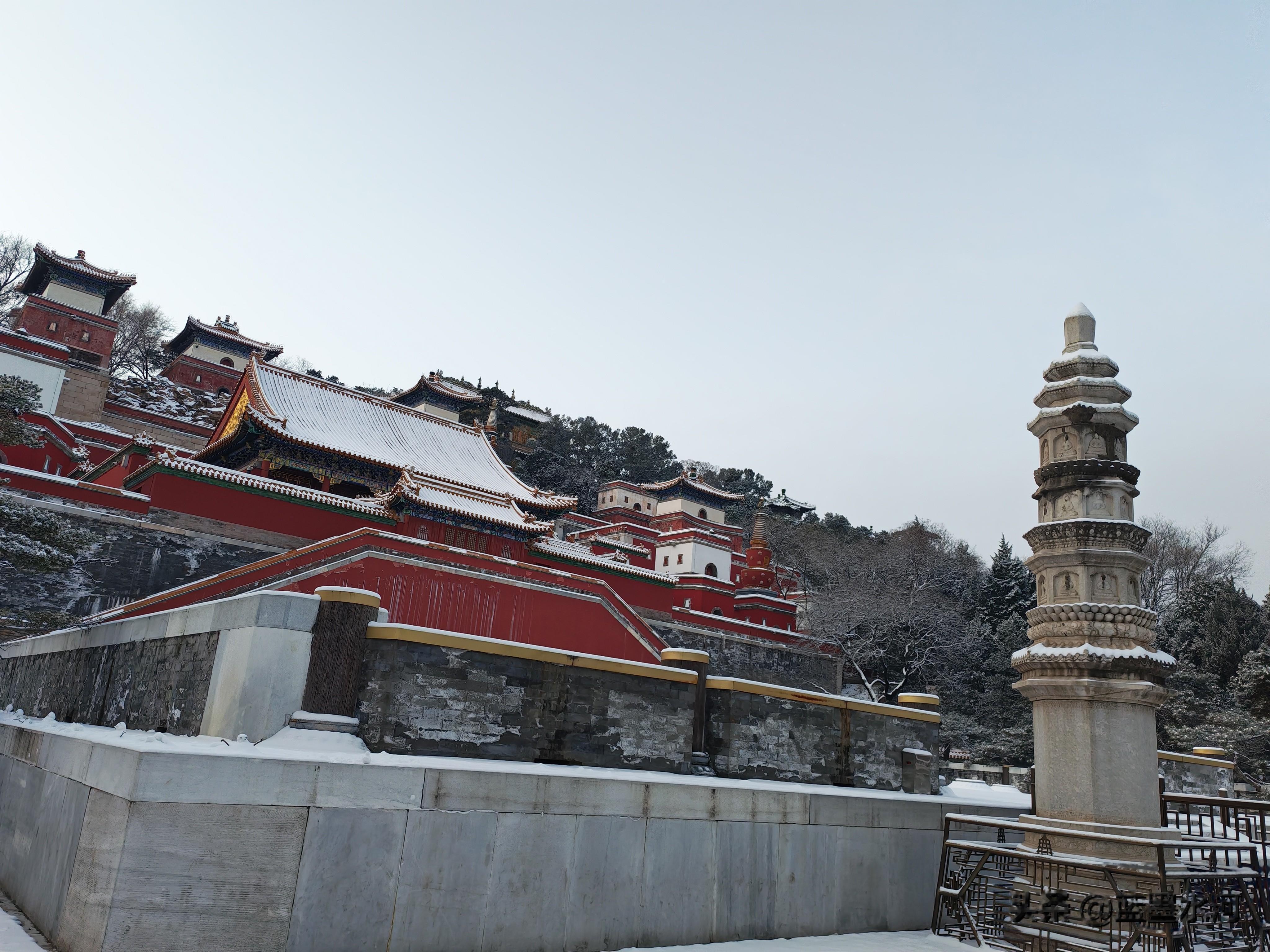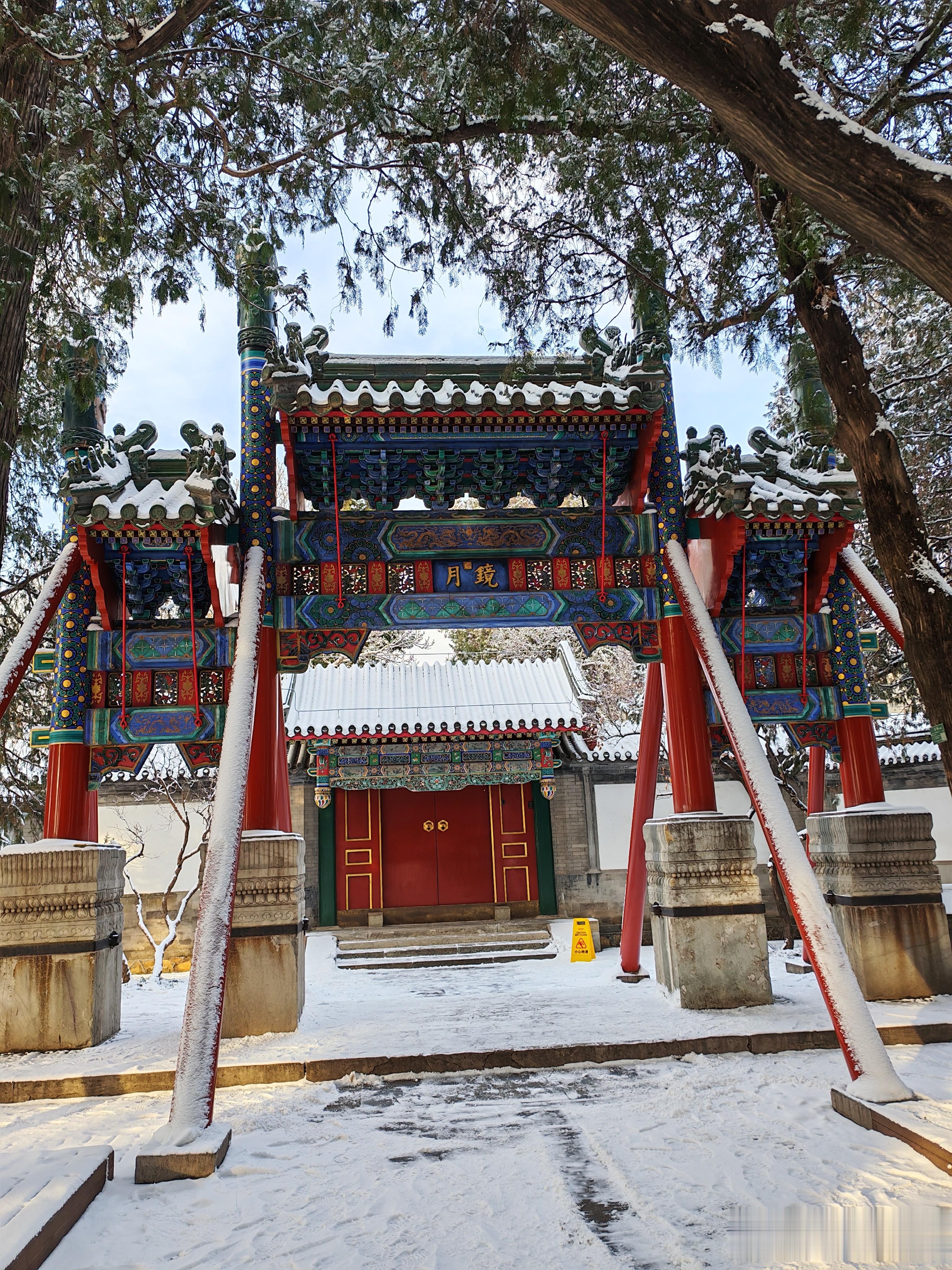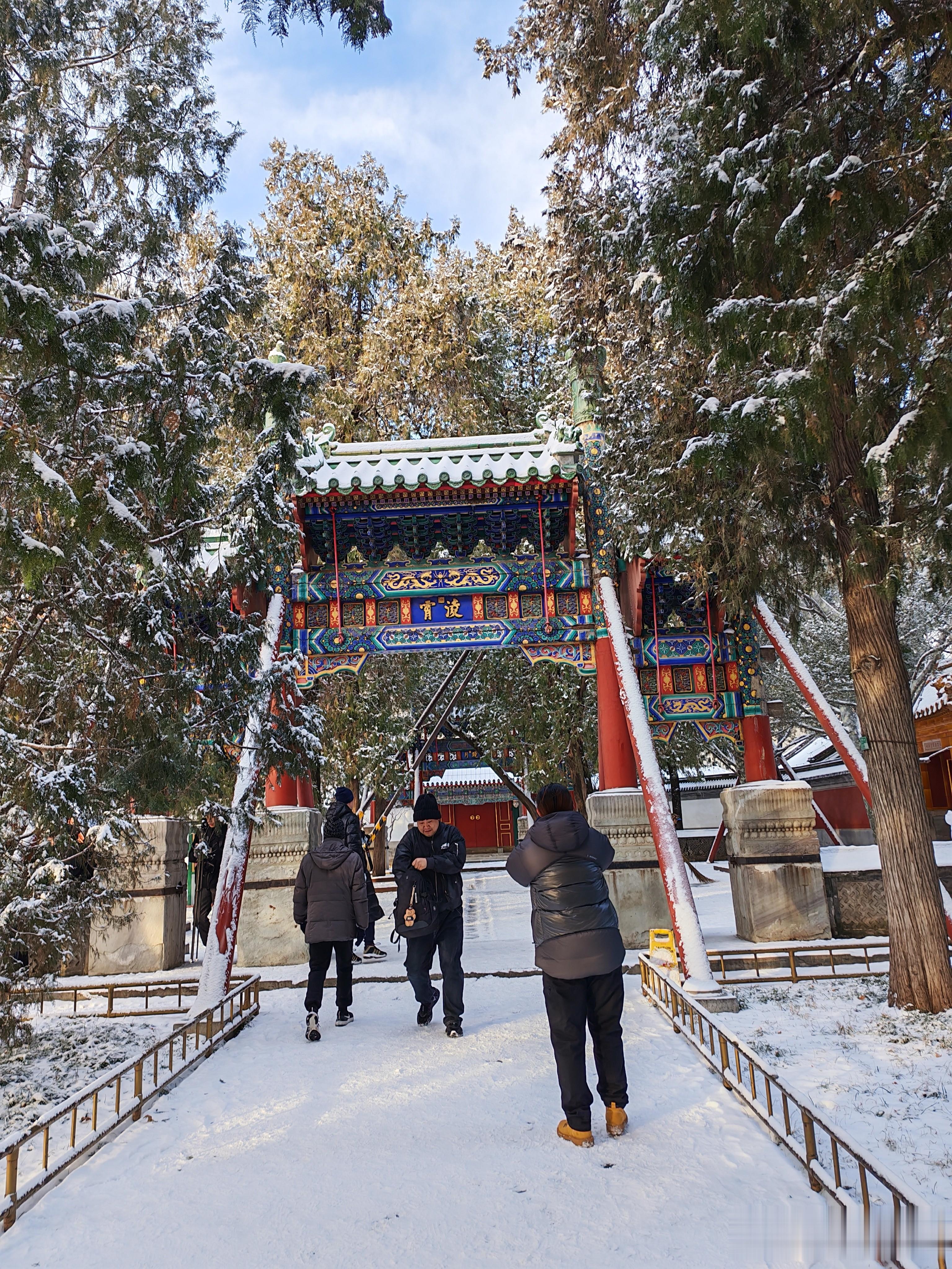 大家看看进入北宫门的雪景吧,首先映入眼帘的是须新灵统建筑群。