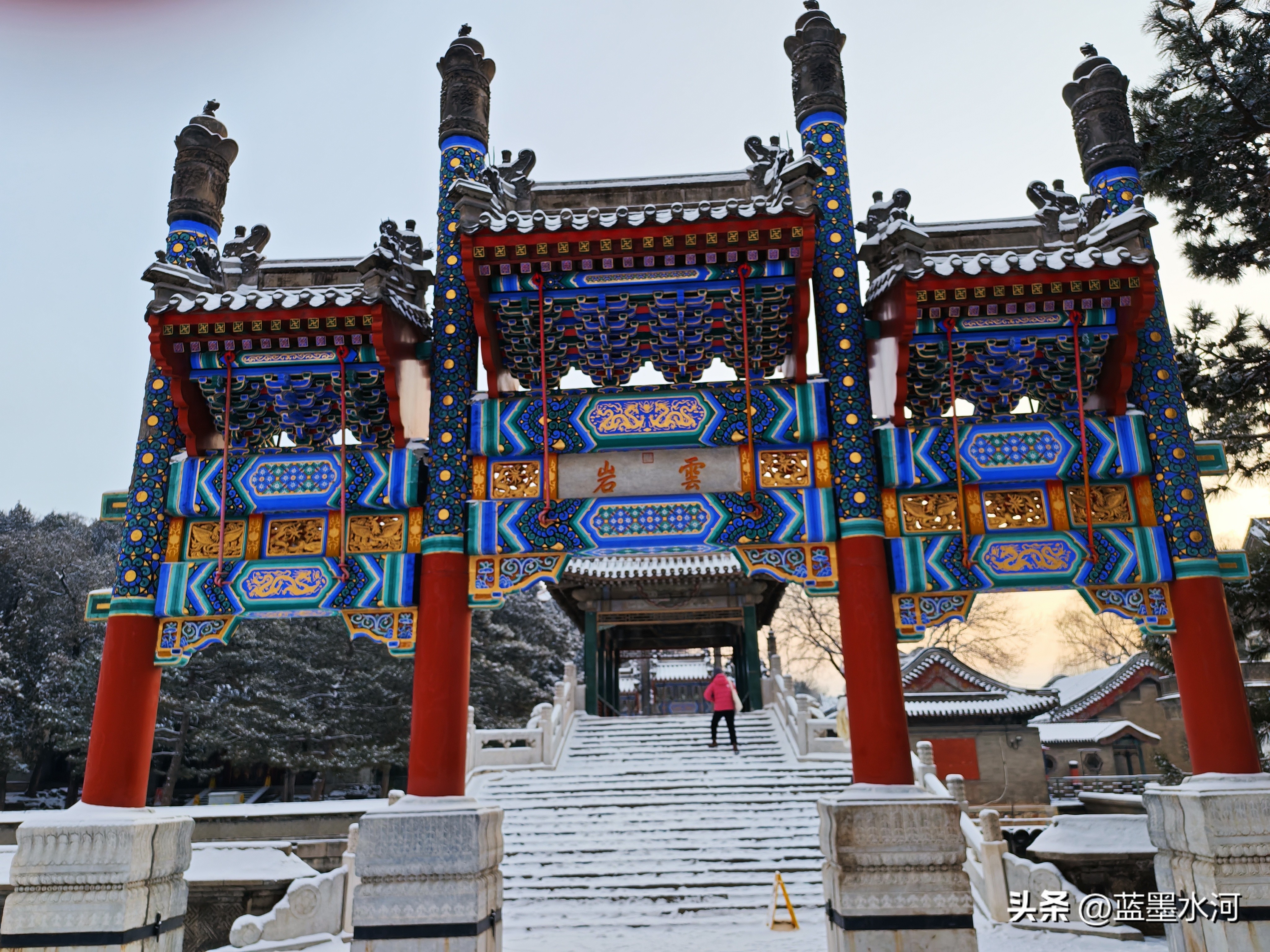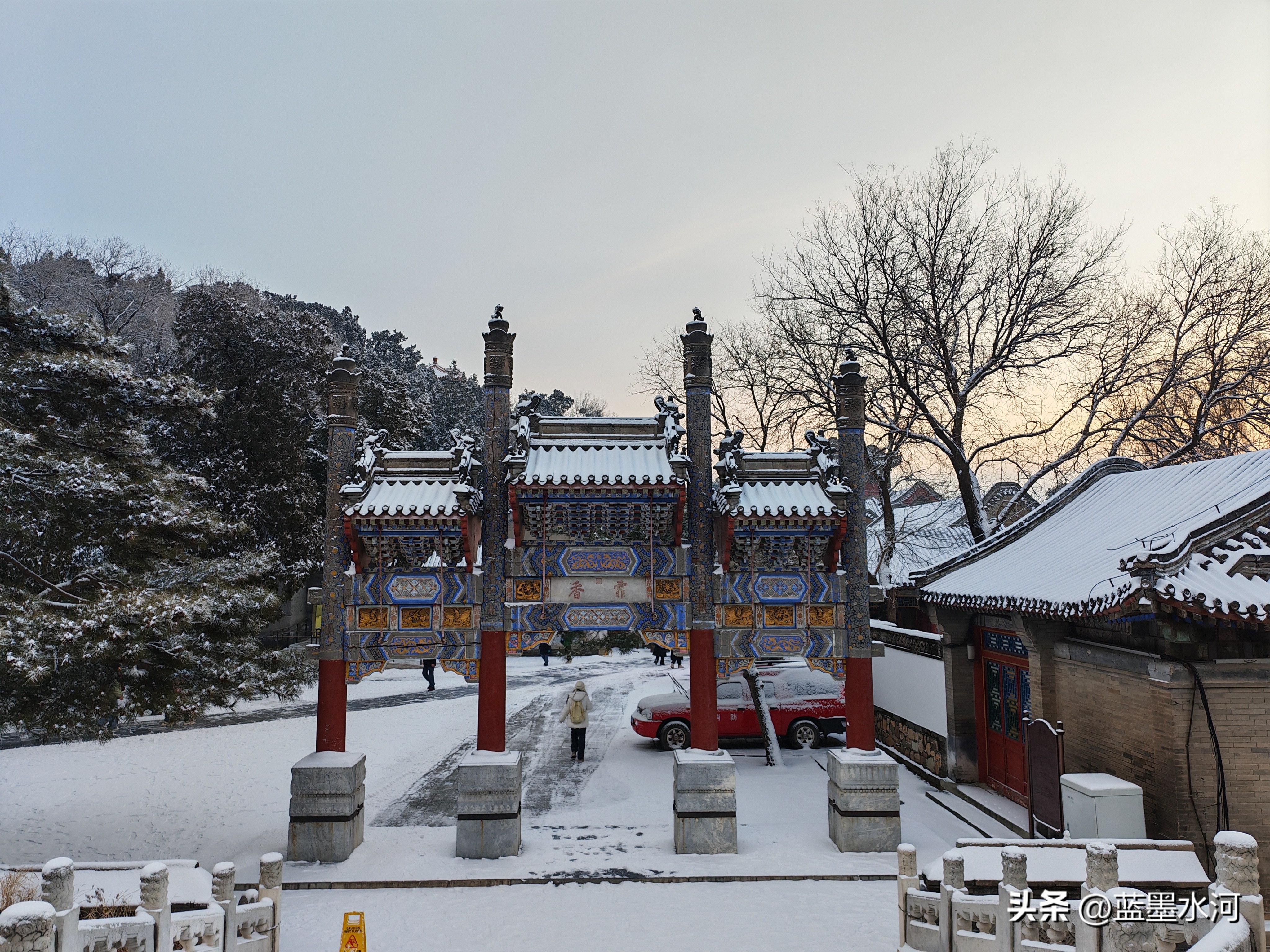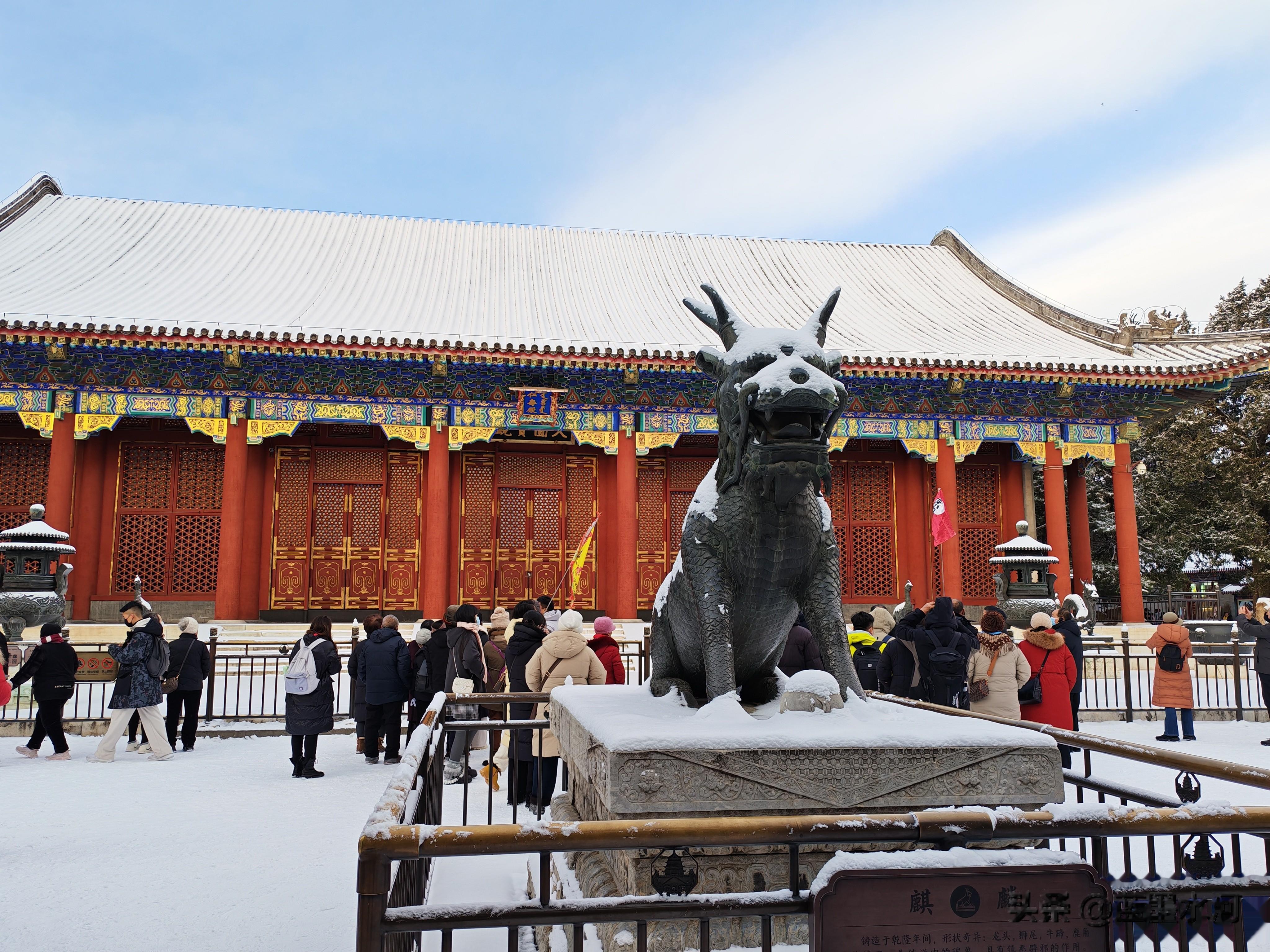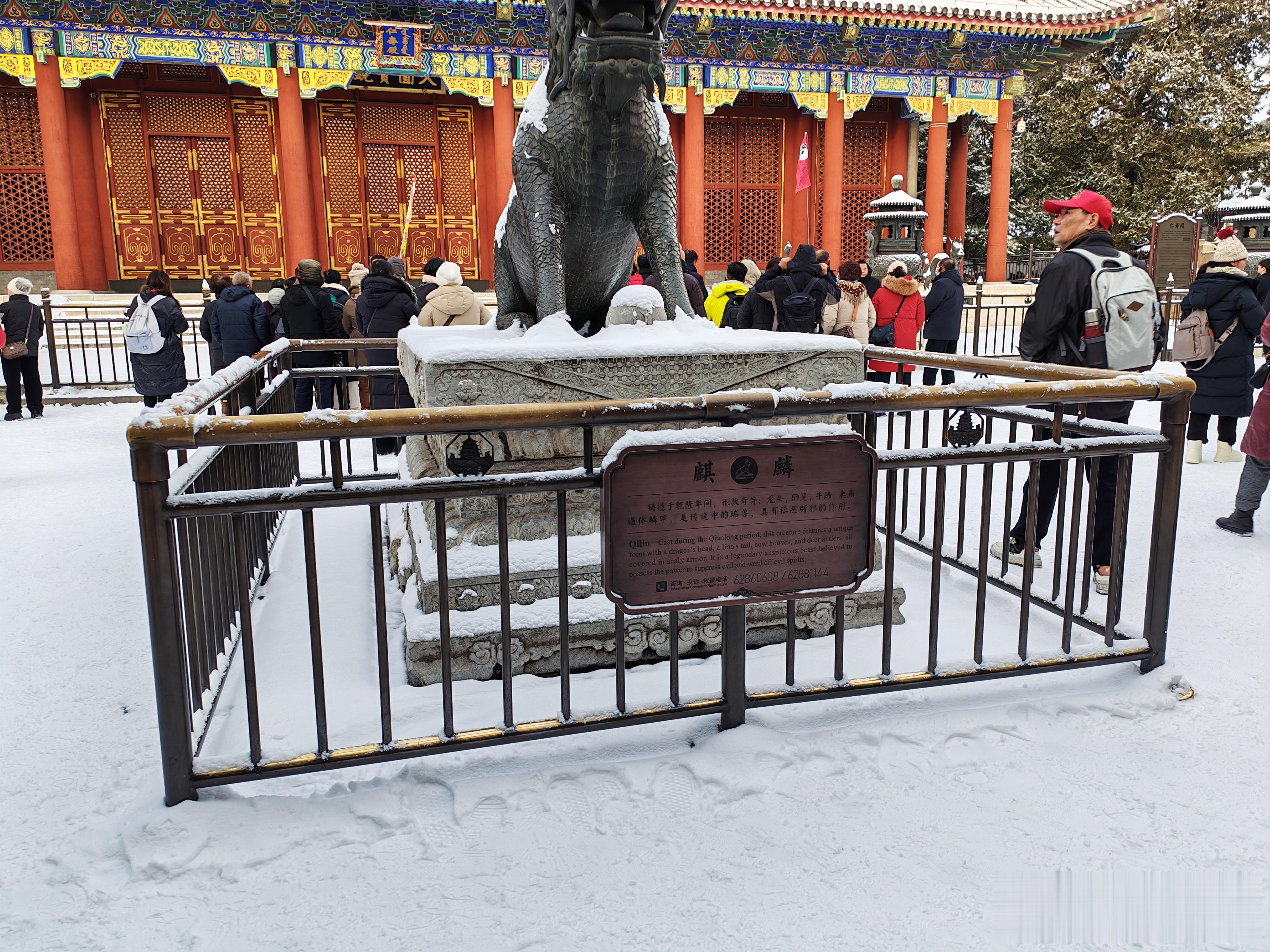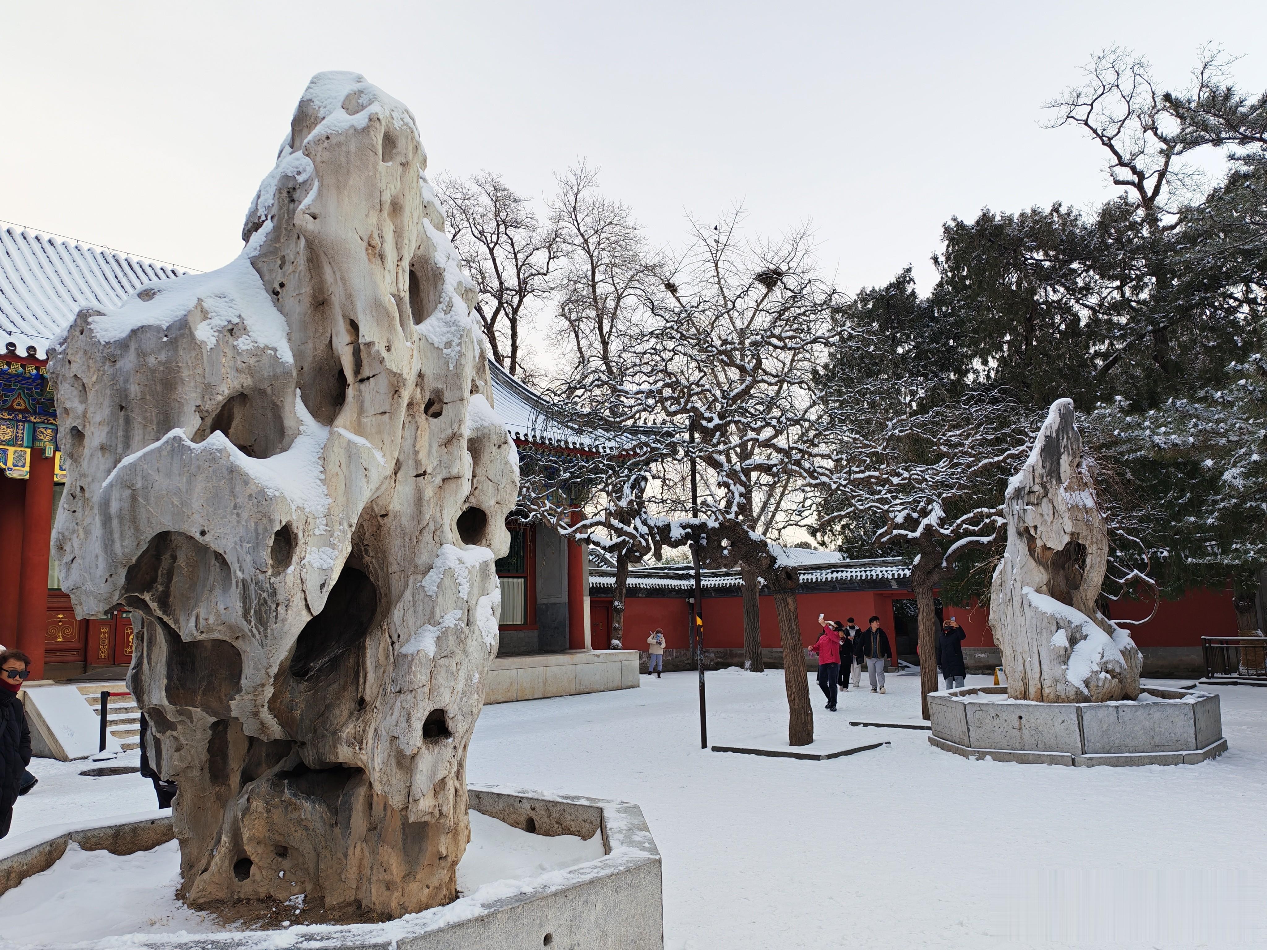 大家看看进入北宫门的雪景吧,首先映入眼帘的是须新灵统建筑群。
