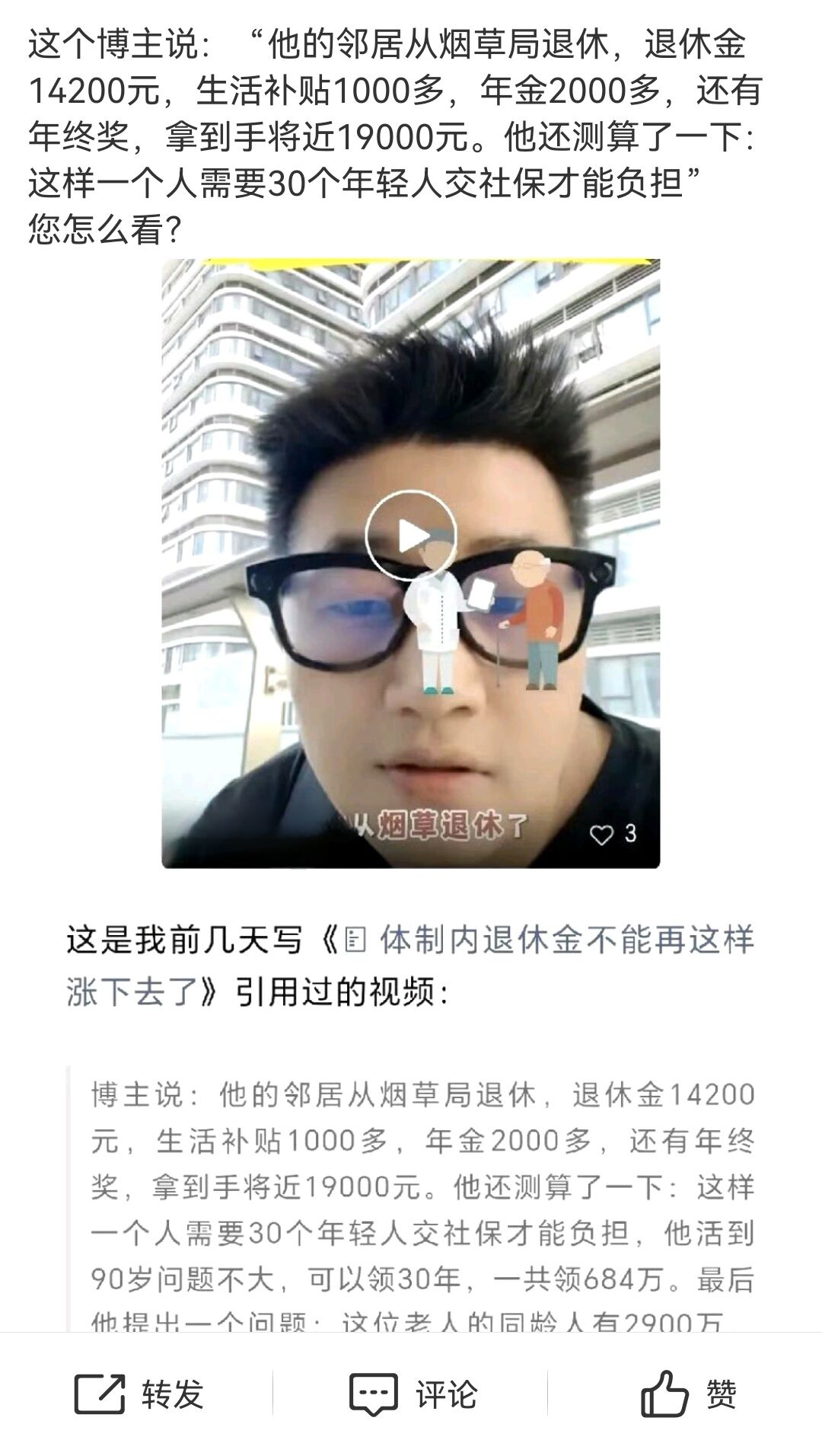 体制内退休金这么涨下去,真的不行了。有人退休金基数已经是别人的十几倍,每年还按同样比例涨,表面公平,实际是在拉大差距。比如有位烟草局退休的,每月能拿将近19000元。算一笔账:养一个这样的退休人员,需要30个年轻人同时交社保。如果他活到90岁,三十年来要领走684万。更值得警惕的是,这一代退休老人有近2900万,但今年新生儿只有900万。二十多年后,这批孩子要负担社保时,压力会有多大?有人说烟草行业贡献大,理应拿得多。其实不然。高退休金主要来自它的垄断地位和政策红利——利润高、按顶格交社保、还有职业年金。而普通企业往往按最低标准交社保,也没有年金。结果同样是工作一辈子,退休待遇天差地别。这不是贡献差距,是制度不公。老年人越来越多,年轻人越来越少,这个体系真的需要改变了。3500的牛马们,你们怎么看