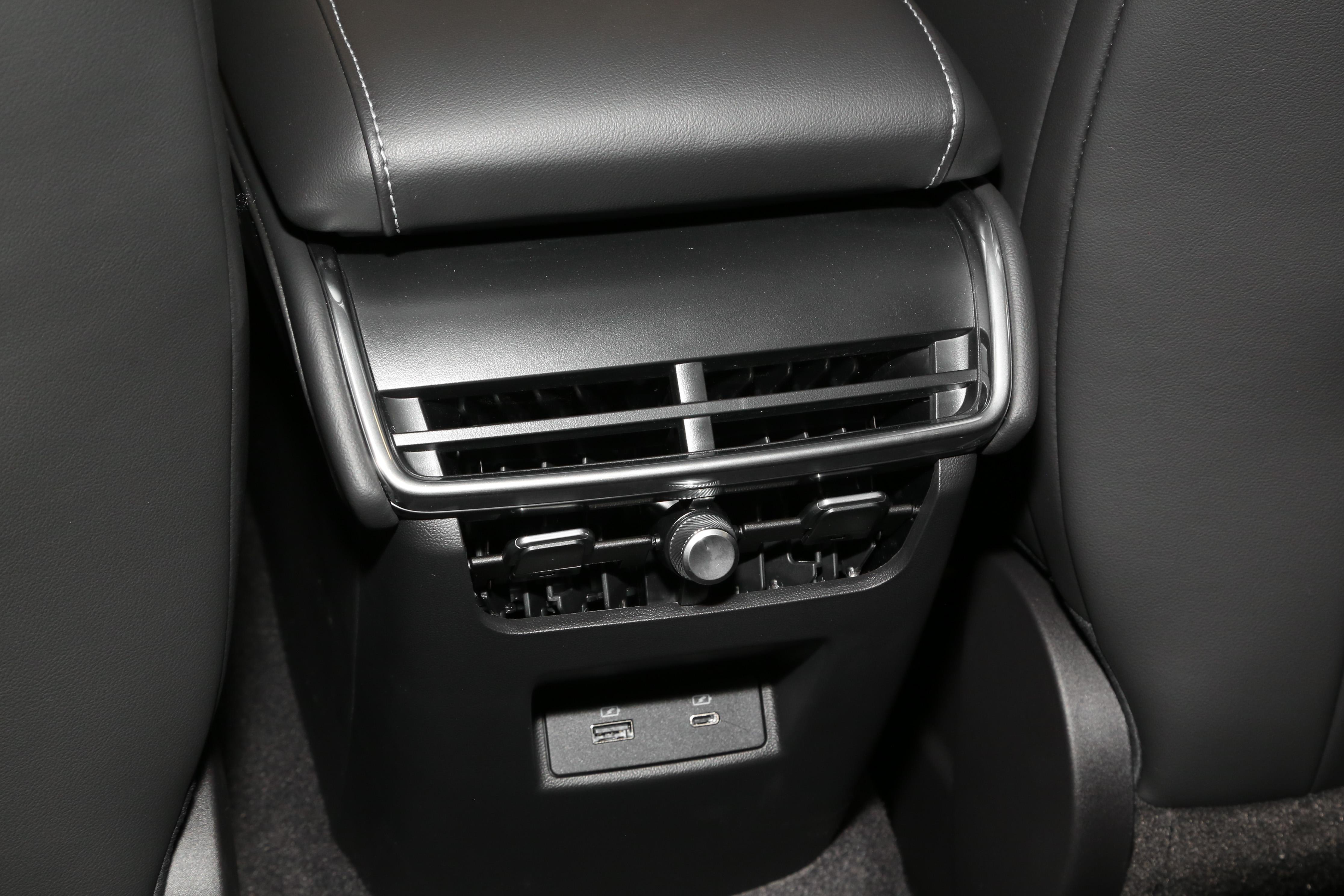 蒙迪欧的内饰以“科技豪华”为核心,1.1米贯穿式联屏(12.3英寸全液晶仪表+27英寸4K中控屏)成为视觉焦点,支持分屏操作与AR实景导航功能,导航信息可实时投射至前挡风玻璃,提升驾驶安全性。车机系统搭载SYNC+ 2.0智行互联系统,内置高通骁龙820A芯片,操作流畅性提升明显,支持AI智能语音交互(连续对话、分区唤醒)、手势控制、面部识别及车载KTV等功能。中控台采用软性搪塑材质与皮质混搭,搭配红色缝线与镀铬饰条,营造出运动与豪华并存的氛围。0.94平方米全景天窗增强车内采光,搭配多色可调氛围灯,营造出沉浸式座舱体验。此外,车辆配备手机无线充电面板、Type-C快充接口(前排3个+后排2个)、带照明功能的化妆镜等细节配置,提升日常使用便利性。蒙迪欧的2945mm轴距带来实质性的空间提升,后排腿部空间十分宽敞,身高170cm的乘客乘坐时,腿部空间超过2拳半,膝部余量充足,后排乘客可以尽情舒展双腿,长时间乘坐也不易疲劳。车内横向空间也较为出色,1875mm的车宽使得后排乘坐三人时不会显得过于拥挤。后排座椅支持多挡位调节,并且可以完全放倒,实现后备箱520L-1550L空间的自由切换,方便搬运大件物品,如家具、自行车等。车内还设计了丰富的小储物空间,如车门储物格、中控台下方的储物槽、扶手箱等,可以方便地放置手机、钱包、水杯等物品,提升了车内空间的实用性。