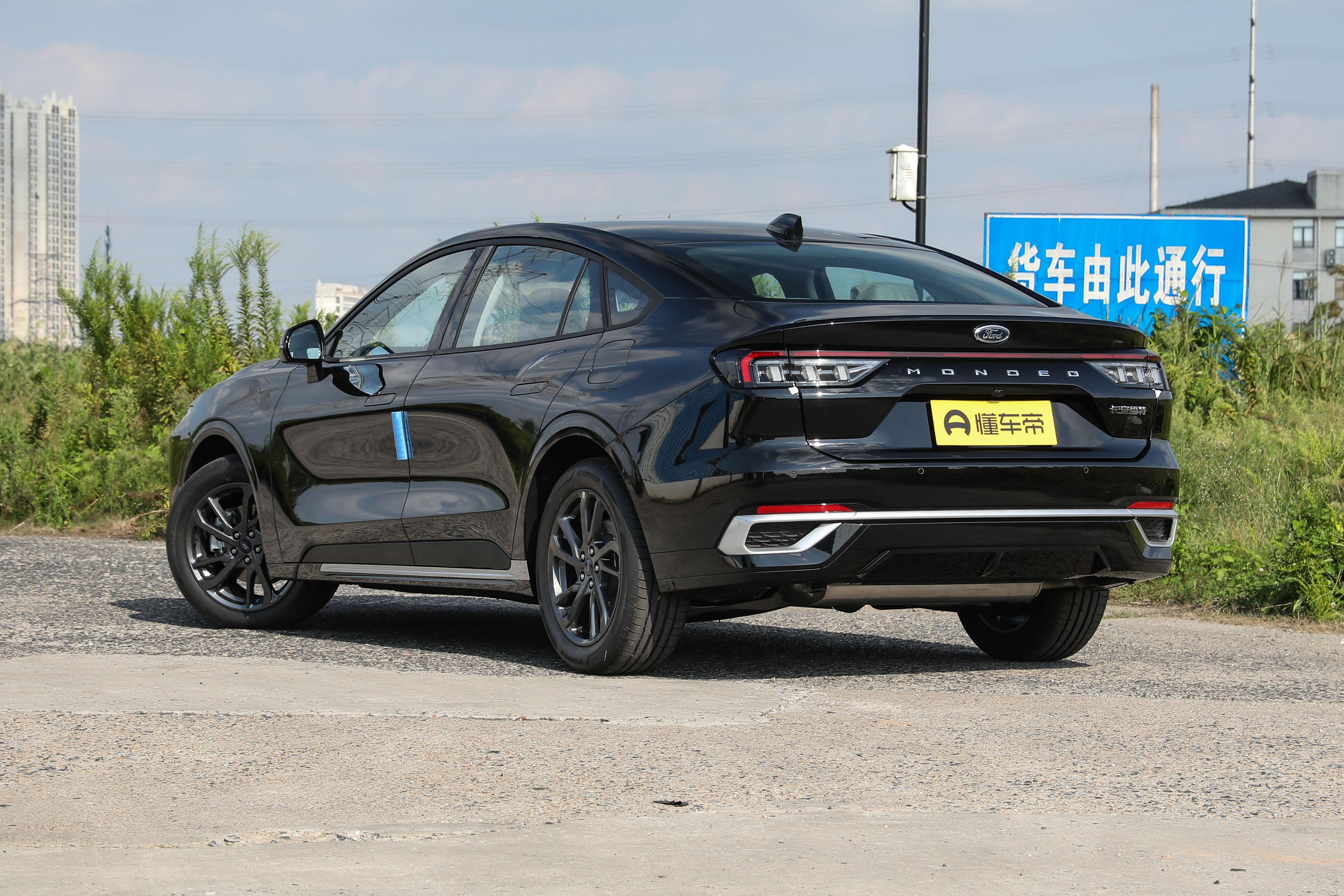 蒙迪欧采用福特“势能美学”设计语言,车身尺寸为4935×1875×1500mm,轴距2945mm,接近中大型轿车的体量感。前脸配备参数化3D鳞甲格栅,支持主动闭合功能,搭配分体式LED大灯与贯穿式日行灯带,视觉宽度延伸至2.1米。车身侧面采用轿跑式溜背造型,隐藏式电动门把手与18英寸花瓣轮毂(轮胎规格235/50 R18)降低风阻,既保证运动感又兼顾燃油经济性。尾部贯穿式尾灯内置点阵式LED光源,配合双边单出镀铬排气装饰,强化运动属性。新增“紫韵灰”哑光金属漆在光影下呈现渐变效果,搭配可选装的悬浮式黑车顶,满足年轻用户对个性化的追求。