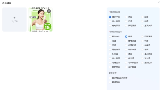 灵活设置:“翻译商品主体文字”、“翻译品牌文字”,根据自己的实际需求来挑选相应的翻译模式;