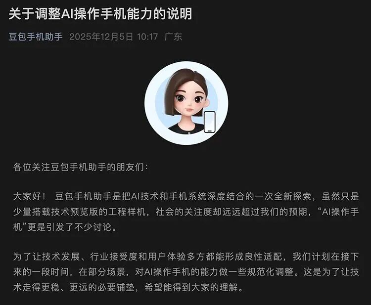 12月5日,豆包主动关闭金融、游戏等敏感场景AI功能,这不是投降,而是战术调整。这场博弈给企业经营者三大核心启示。
