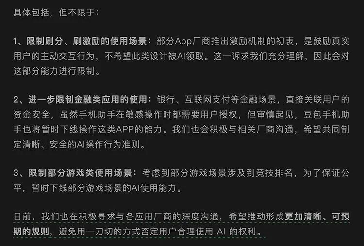 豆包使用的操作权限,与刷单外挂技术原理一致,风控系统无法区分“授权AI”与“恶意外挂”。银行怕AI被劫持转账,游戏公司怕AI代打破坏公平——创新企业必须先建风控机制,否则技术再领先也会被行业抵制