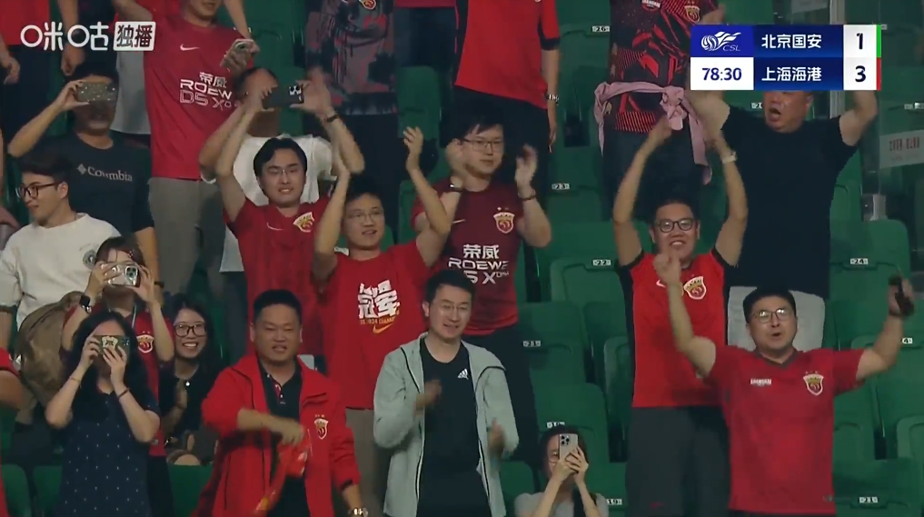 上半场双方踢成1比1,上港开场第6分钟就率先破门!下半场,北京国安的进攻没有起色,上港却异常生猛,分别在第51和第79分钟连进2球以1-3领先。
