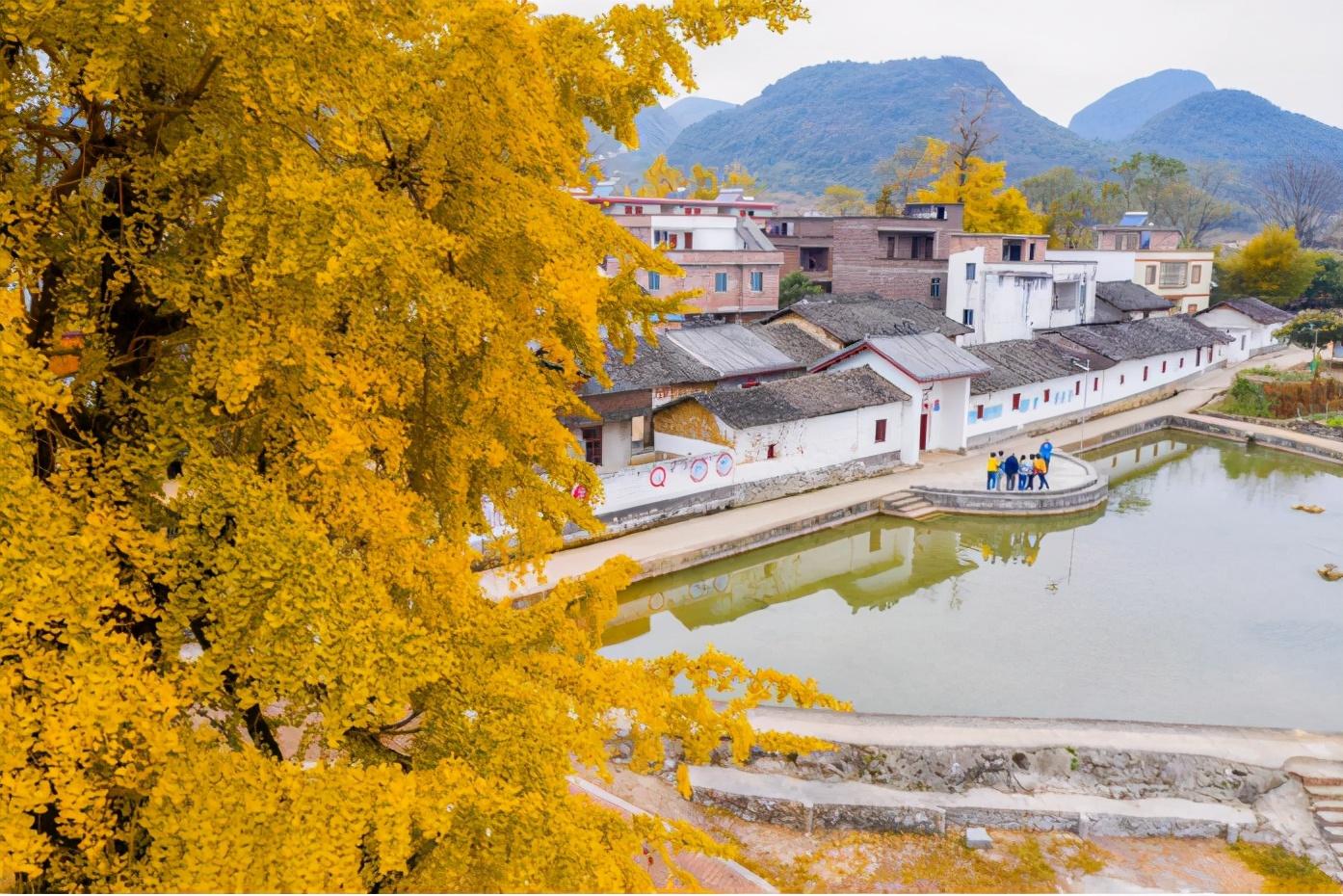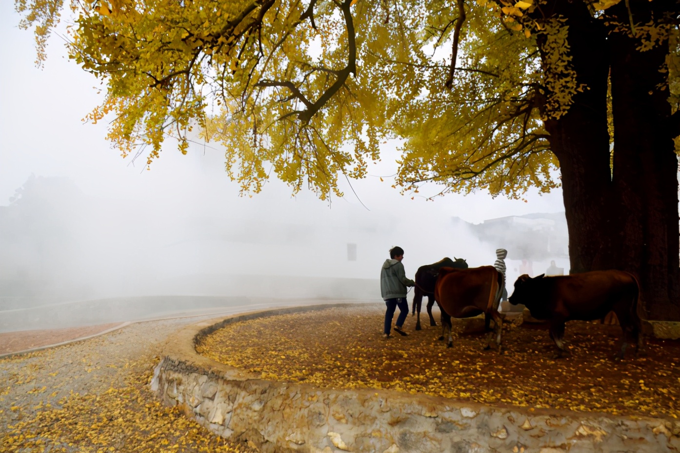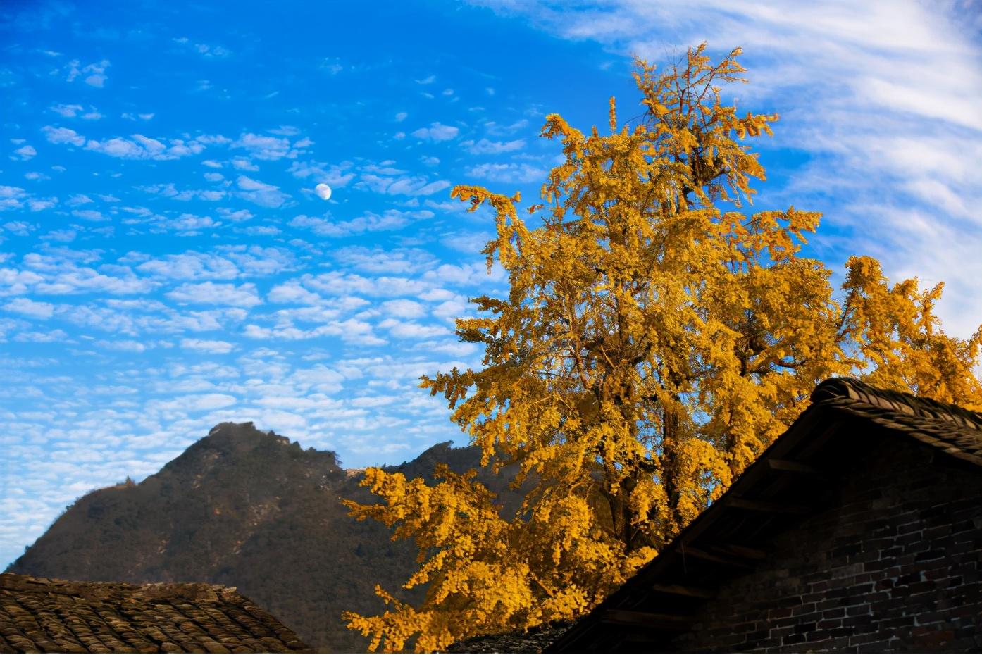 放眼望去,门前屋后、田野中、水塘旁,每寸美景早已与金黄的银杏树浑然一体。