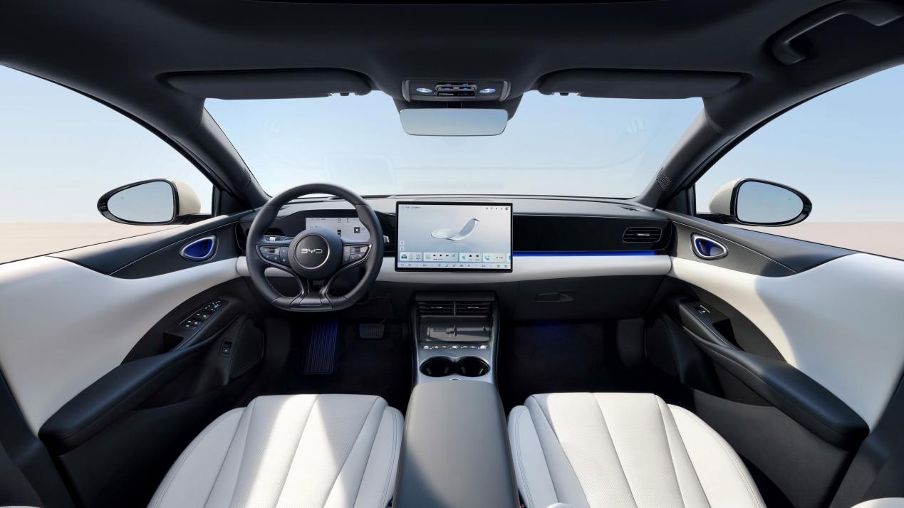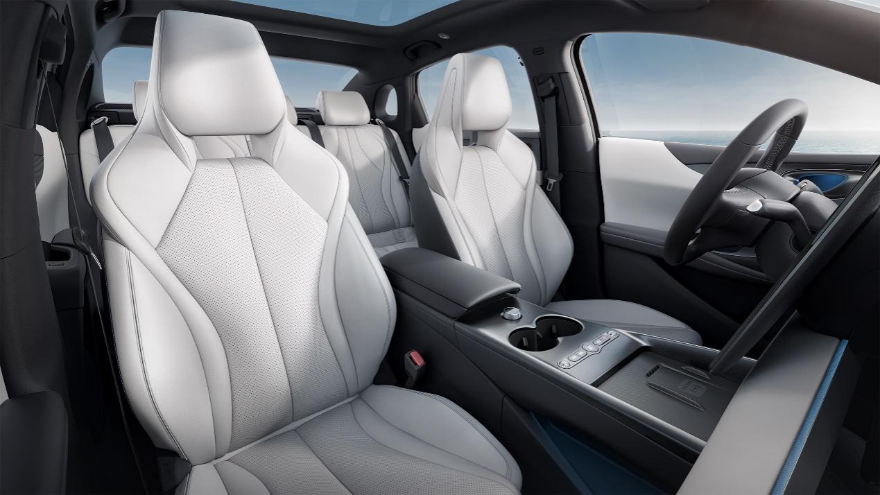 海豹06EV的内饰设计以“科技赋能生活”为核心理念,打造了海韵质雅座舱。新车采用对称式布局,平直的中控台上搭载了D型方向盘和悬浮式中控屏,配备怀挡式换挡机构,整体视觉清爽简约,颇具品质与高级感。此外,新车还配备了冷暖两用冰箱、前排座椅通风加热、全场景环绕音响及32色律动氛围灯等配置,将家用场景的舒适性与便利性推向了新高度。智能座舱高阶版-DiLink 100的加入,更是让新车支持全场景语音交互与智能生态互联,为用户带来了“智能头等舱”般的出行体验。