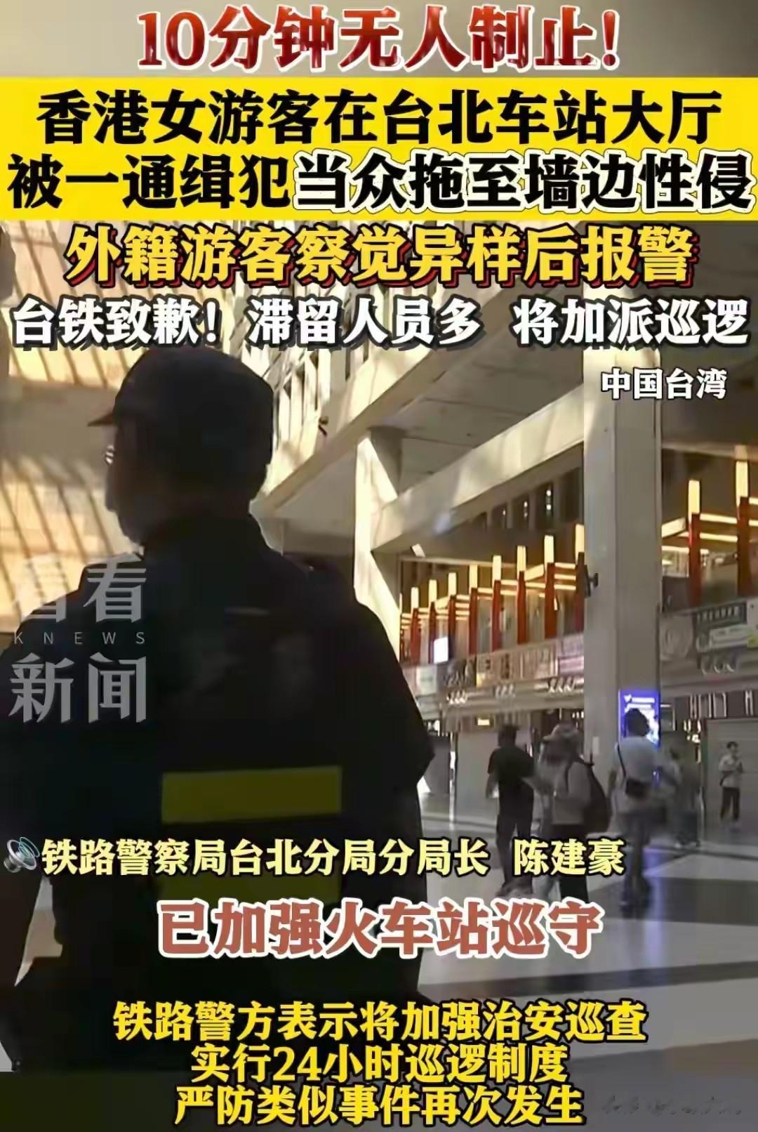 记得上个月10月9日下午4点左右,台北车站一醉酒女被男子拖墙边性侵超十分钟,现场无人制止的事件吗?