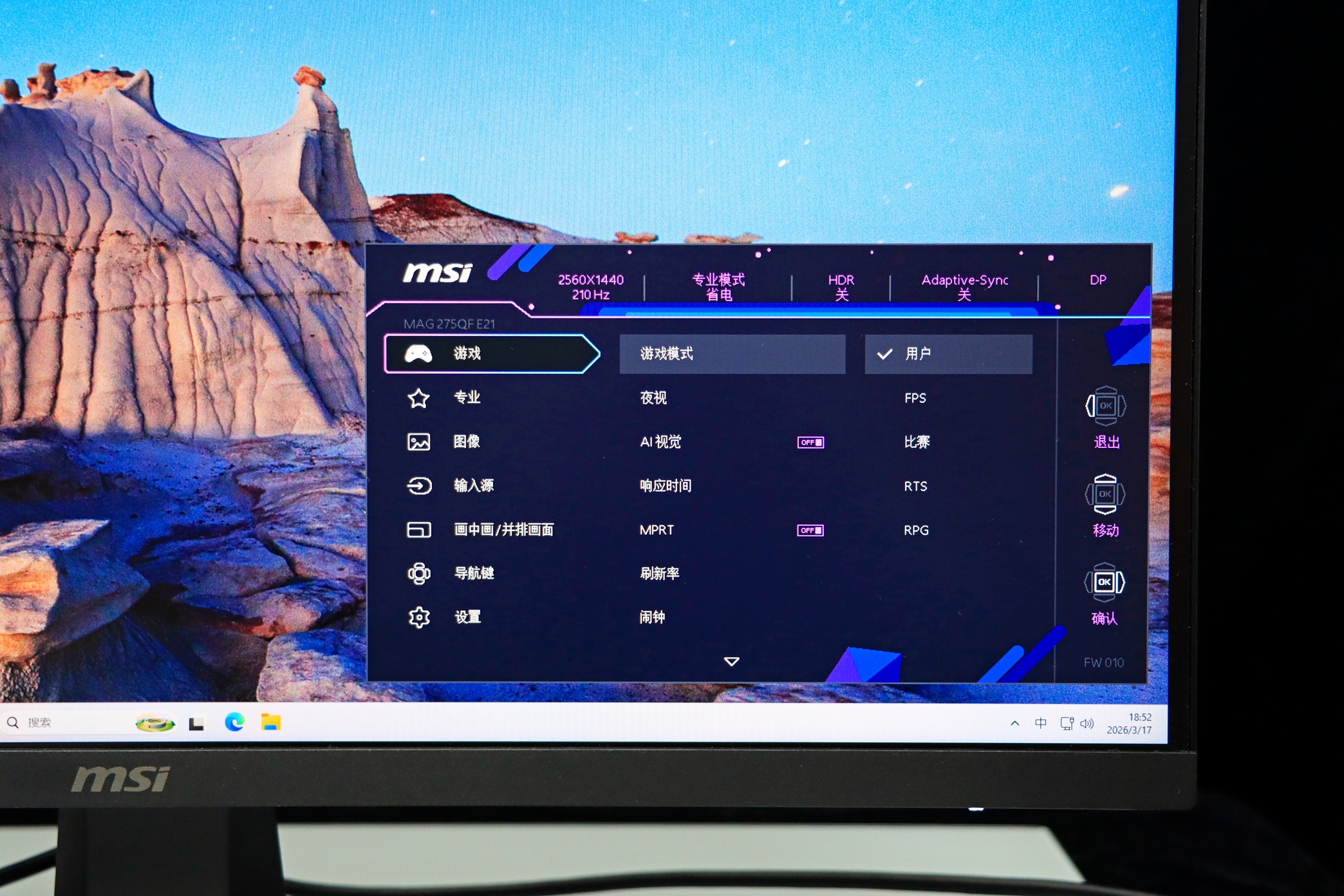 如果你预算有限,但是想要体验非常出色的电竞级显示器 + 出色的视觉享受那么 微星 MAG 275QF E21 黑刃是您不二的选择!
