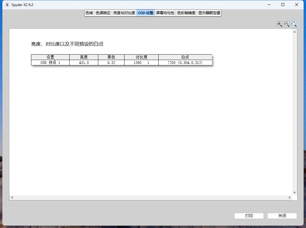 ▲ 显示器的实测色彩准确度偏差 △E < 1 ,这让这台显示器也有了面对专业领域的初步能力,更强的色彩控制力可以让用户调校出更为准确的场景色彩。