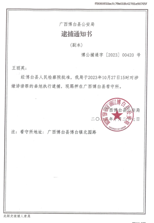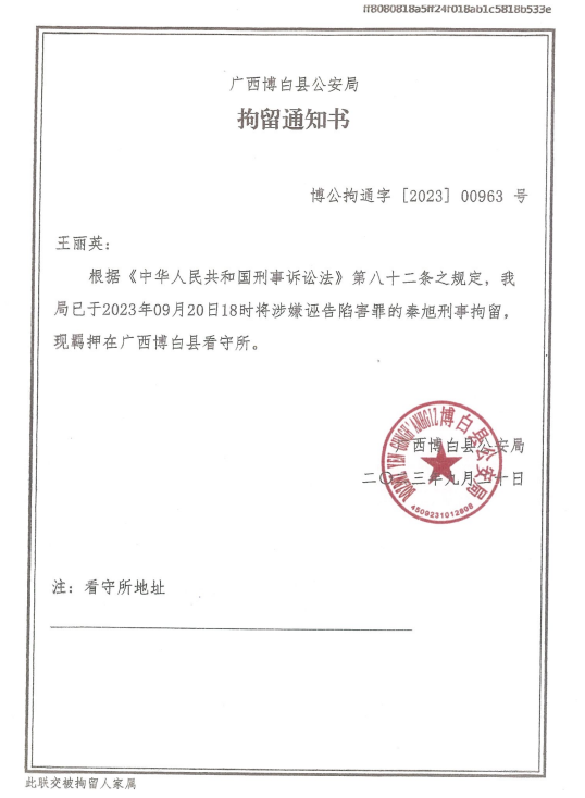 2022年7月6日,秦旭通过短视频平台实名举报朱某、冯某等6名法院工作人员,并向博白县政法委书记谢某递交亲笔信。次日,政法委通知其配合调查,但两个月过去仍无调查结果。在举报无果后,事件进入刑事侦查环节——博白县公安局对涉案情况展开刑事侦查,随后博白县人民检察院以诽谤罪对相关人员实施逮捕,最终案件涉及诬告陷害罪的认定。