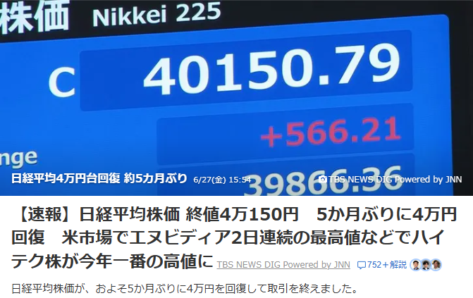 2.日经平均股价时隔5个月恢复4万日元日经平均股价时隔约5个月恢复4万日元,结束了交易。