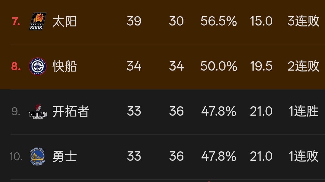 西部第10的位置有多难打?需要连续赢2个客场才能晋级季后赛,历史上几乎没有第10名球队能做到,勇士这希望渺茫到极致。