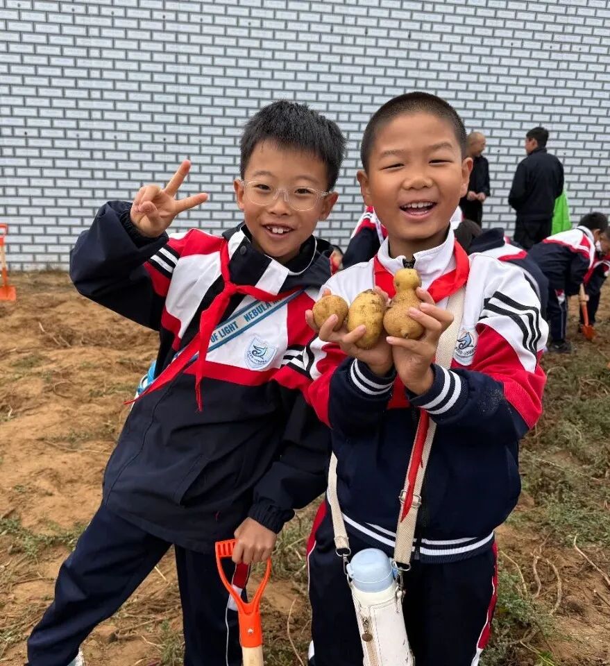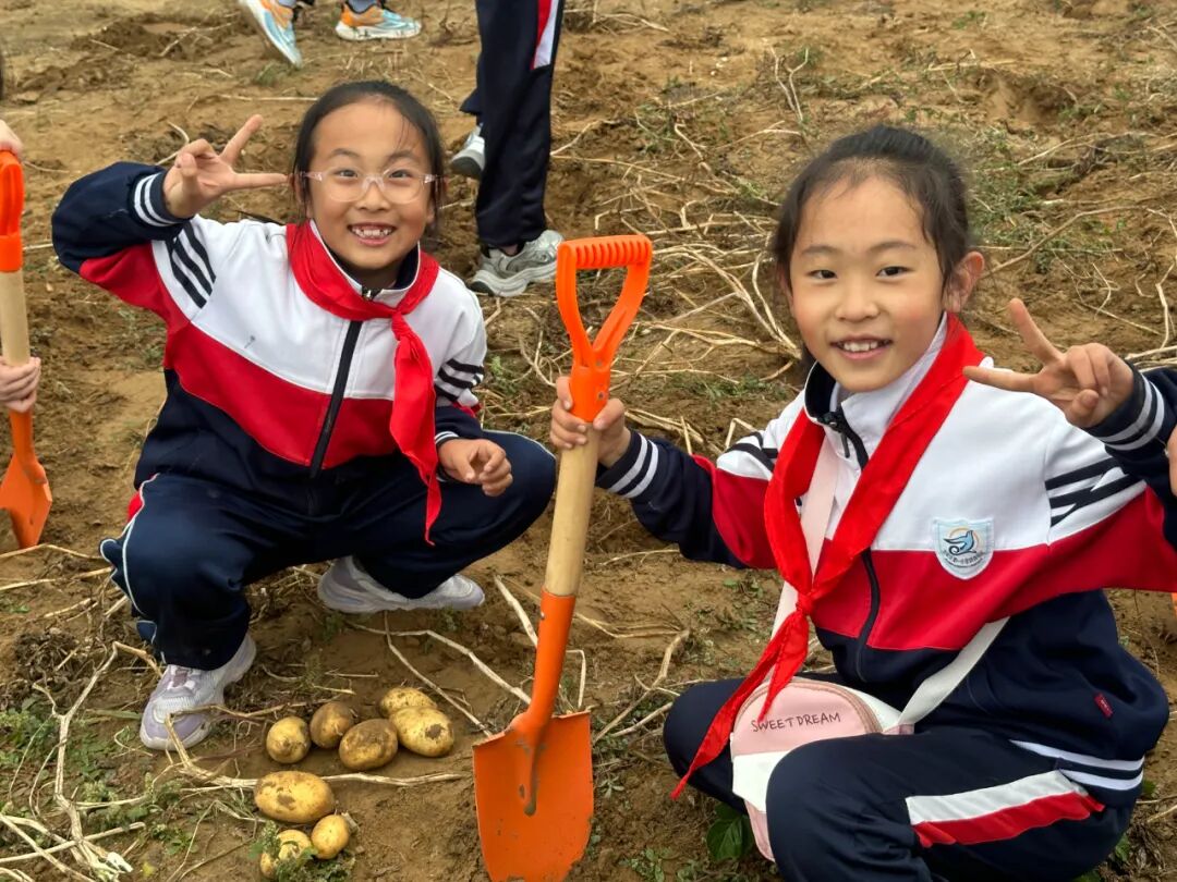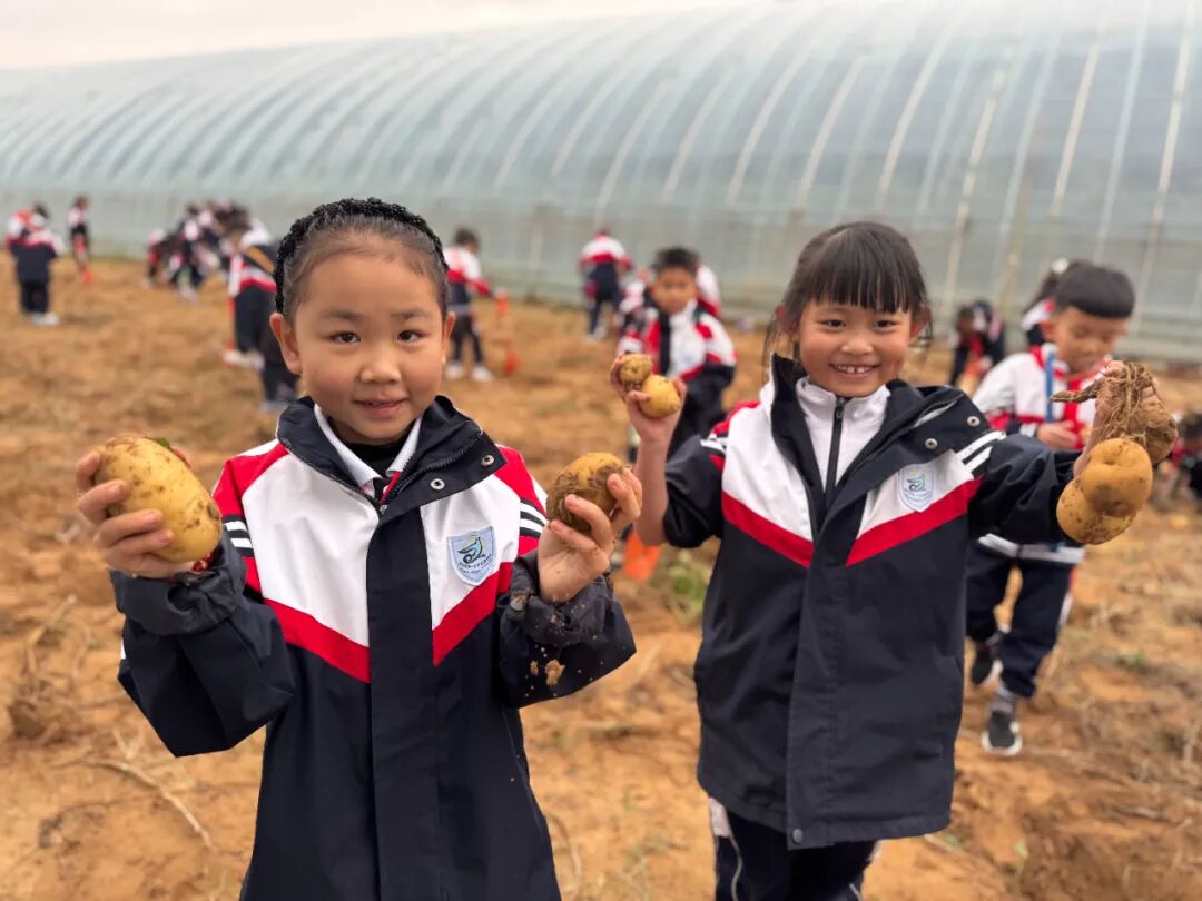 最“接地气”的环节莫过于农耕体验——挖土豆!孩子们撸起袖子,拿起小铲!在地里挖出一颗颗硕大饱满的土豆,都像发现宝藏一样兴奋不已,带来最纯粹的快乐,真正懂得了“粒粒皆辛苦”。