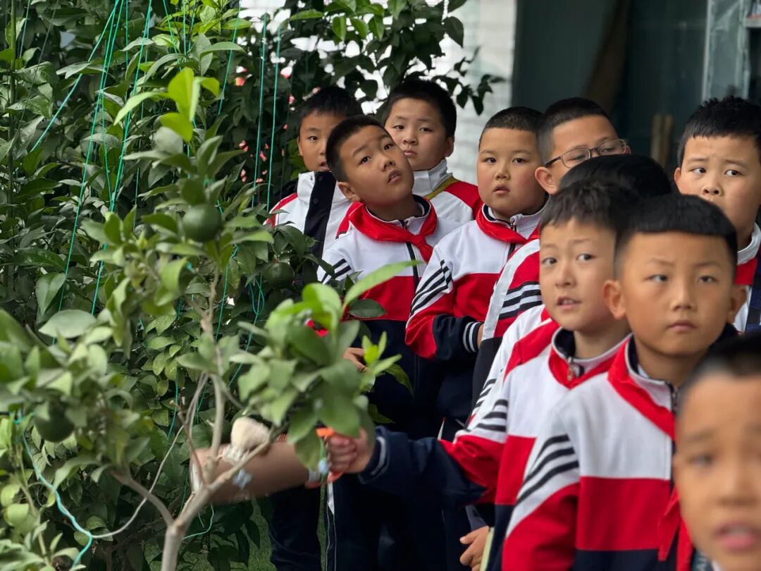 从历史长廊穿越回现代田园,同学们在农业园区里发出了阵阵惊呼!“哇,我们这里竟然能种出火龙果和芭蕉!” “南果北种”的技术让热带水果在北方安了家,孩子们近距离观察沃柑、芭蕉,上了一堂生动的现代农业地理课。
