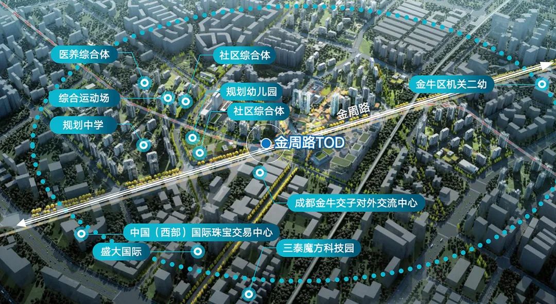 在教育资源方面,金周路TOD周边学府氛围浓厚。地铁600米内,教育资源密布,提供了全龄段的教育服务。周边拥有四川省首批重点学校茶店子小学的三大校区,以及金牛区机关二幼、机关三幼等示范性幼儿园。在建的互助中学项目——将由成都树德中学领办,并命名为“成都市树德金泉中学校(本部)”。此举将全面提升该片区的教育资源配置水平,预计于2026年建成。