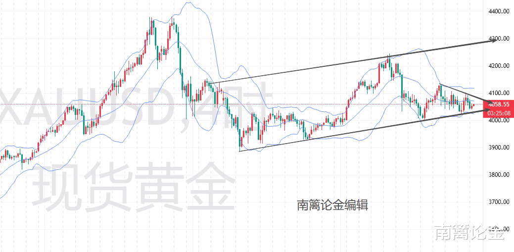 在调整趋势中,什么行情都有可能发生。至于上方,则关注斐波那契从高点的4245到这一轮的低点3997,可得重要回调线位于前高的4115—20区间。鉴于位置稍微有些高,对日内参与者并不友好,可稍微退步看四小时布林带中轨的初步分水岭得失。