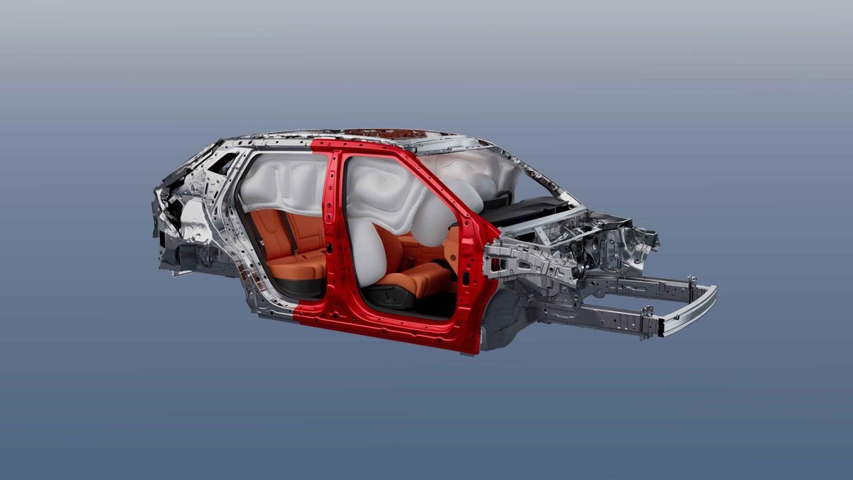 若说主动安全是"未雨绸缪",全新博越的8大被动安全技术则是"铜墙铁壁"。其车身扭转刚度达27000Nm,远超同级水平,配合封闭式笼式框架结构,能有效分散正面、侧面、后方的碰撞力。1500MPa一体式热成型硼钢门环更是关键——这种材料强度相当于普通钢材的5倍,一次冲压成型的工艺消除了搭接区域的应力集中,即便遭遇侧面碰撞,也能最大程度保持座舱完整性。此外,三叶草卸力系统在正面碰撞时通过副车架纵梁和门槛分散冲击力,S形两折弯纵梁设计能吸收更多碰撞能量,发动机下沉技术则避免动力系统侵入座舱。从高强度前防撞梁(117mm超长吸能盒)到后防撞梁(140mm超长吸能盒),每一处设计都为乘员安全层层加码。