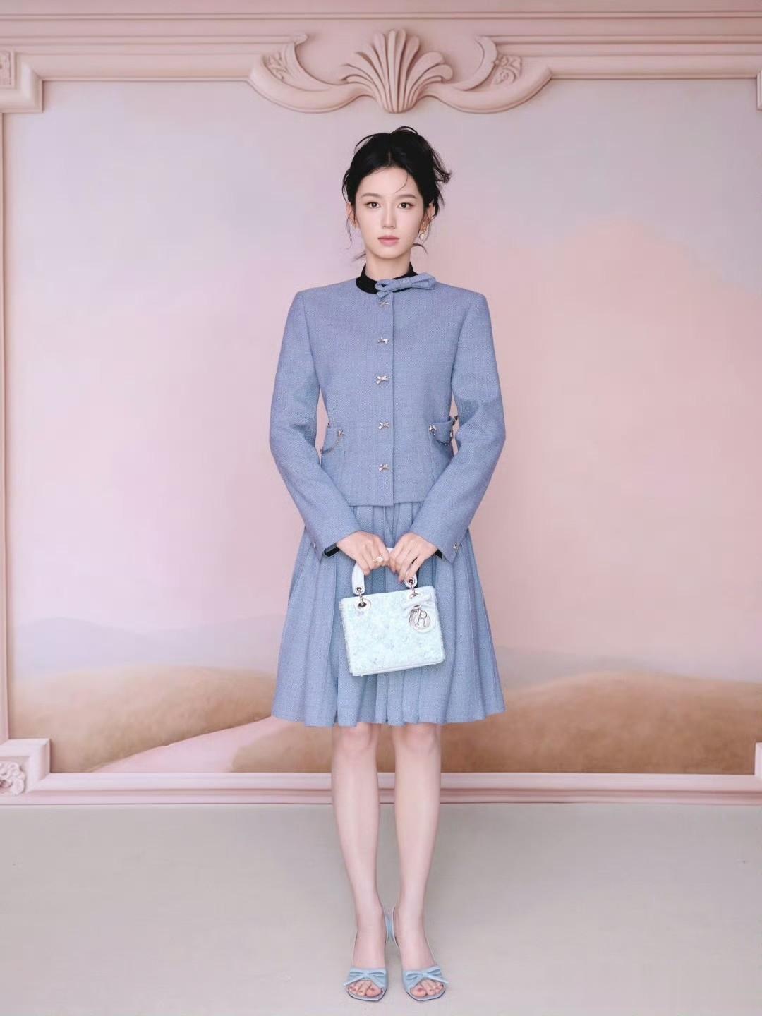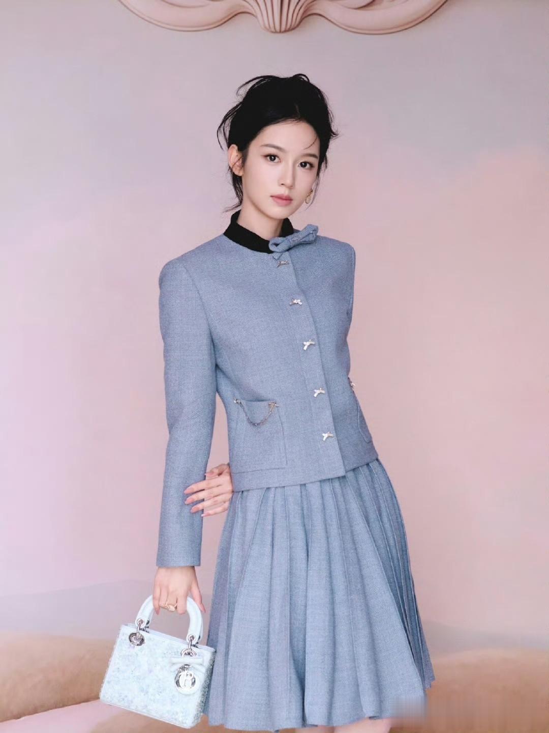 周也少女灰,北京大冬天下雪,却穿着凉鞋短裙的夏装参加活动,不过冷脸小花状态依然美丽满分。