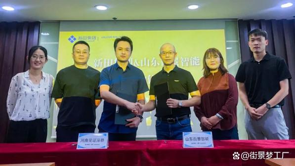 8月24日上午,山东街景智能制造科技股份有限公司(以下简称“街景梦工厂”)与河南新田集团战略合作签约仪式成功举行。街景梦工厂副总裁姜林、街景梦工厂华中区总经理宋丽君、河南新田集团文旅事业部总裁李华伟、河南新田集团文旅事业部副总裁史永正出席签约仪式。